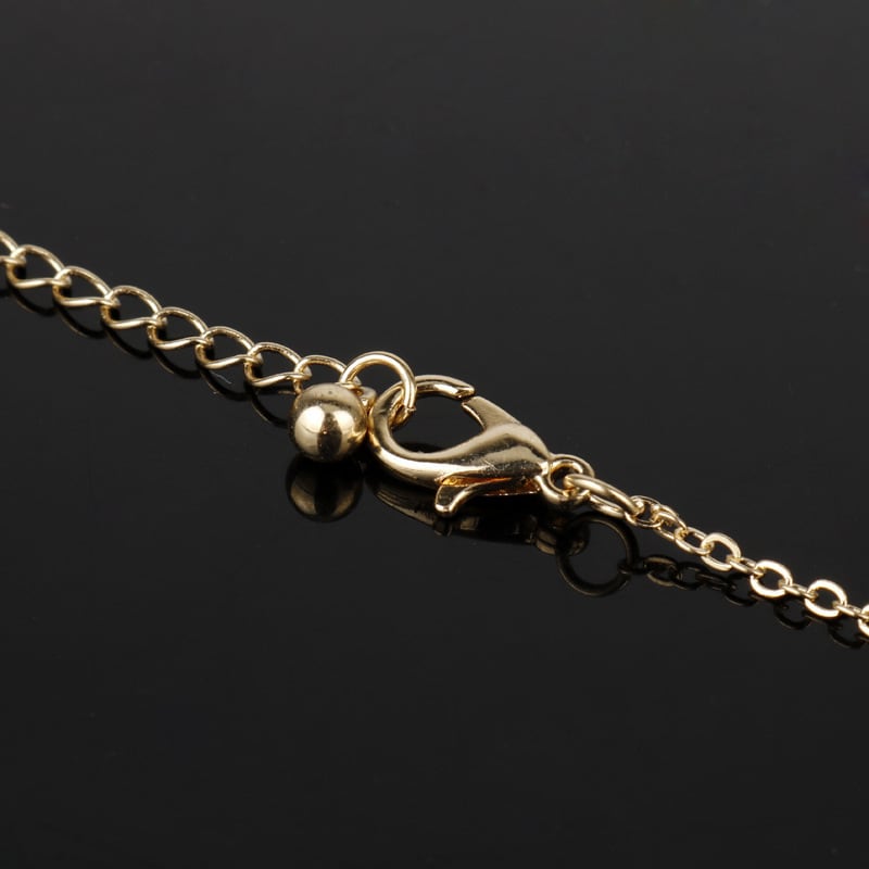パヴェストーンの輝き: 三日月全体には、クリア、ピンク、ブルーなどのカラーストーン(パヴェ)が贅沢に敷き詰められ、デコルテを華やかに彩ります。