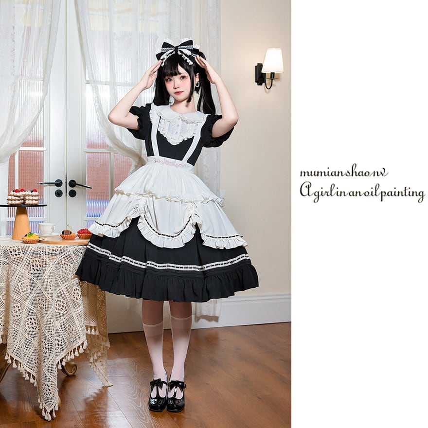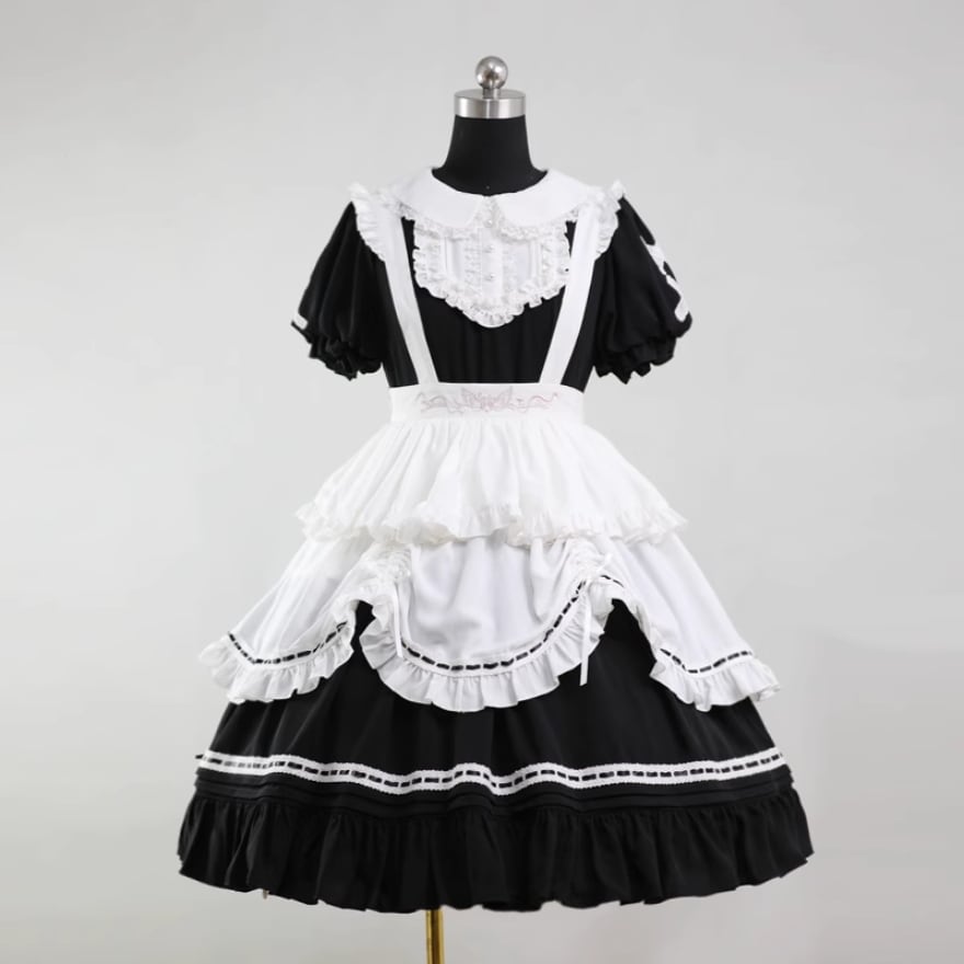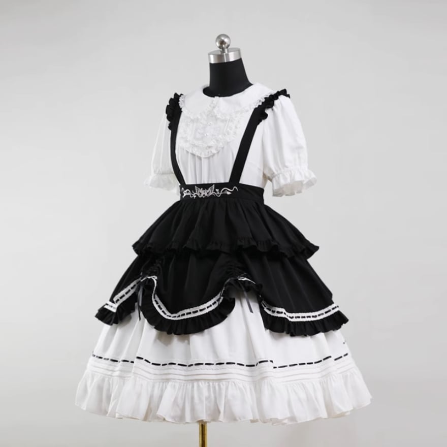 【即納ホワイト L】コンカフェ衣装 ロリータ モノトーン ティータイムメイド ドレスセット