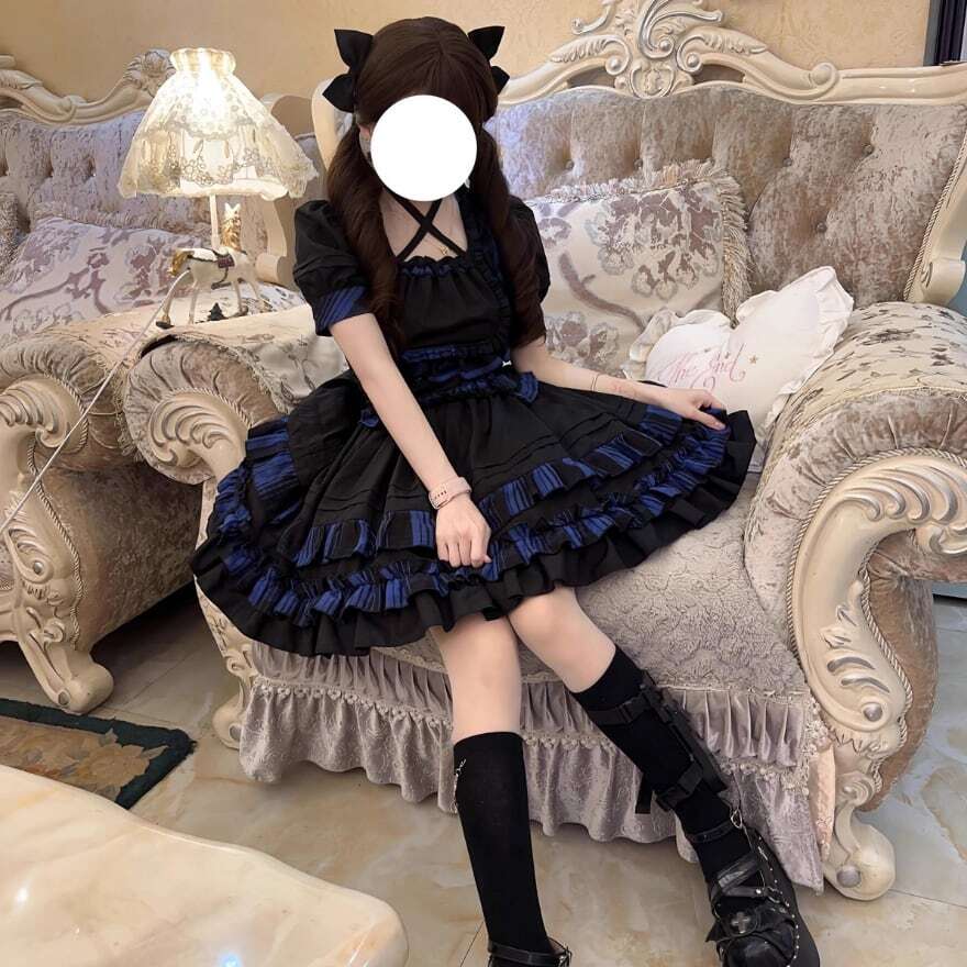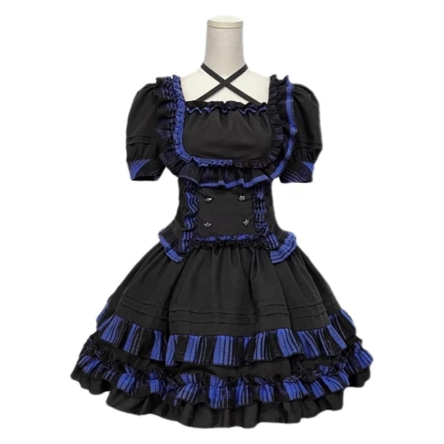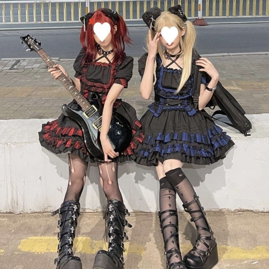 胸元のスターモチーフやクロスストラップ(チョーカー風)など、パンク・地雷系のディテールがアクセントになっています。