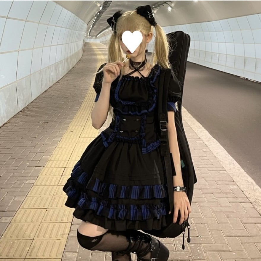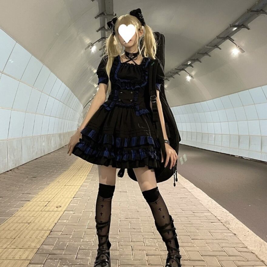 地雷系やサブカルチャーの要素を取り入れた、アイドルステージにぴったりのミニ丈ワンピースです。