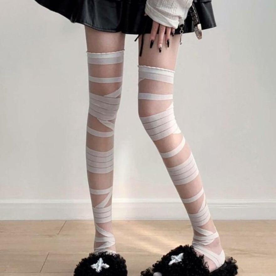 【即納】病みかわ/地雷系 包帯ストッキング バンテージ柄タイツ ゴシック ロリータ