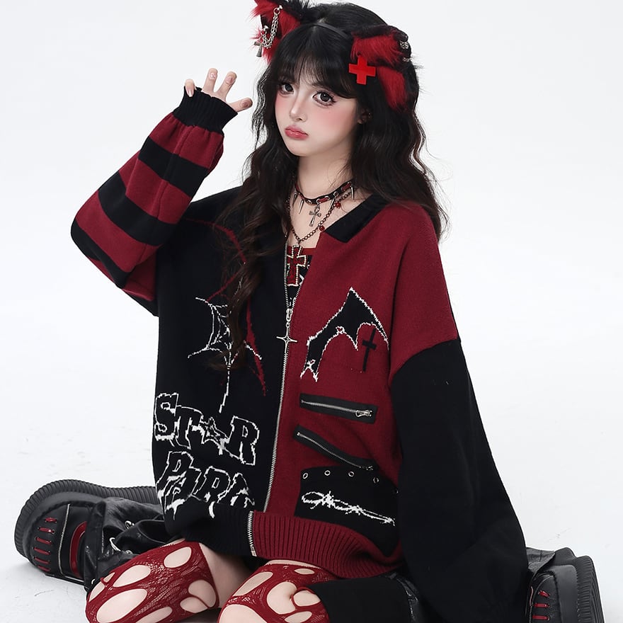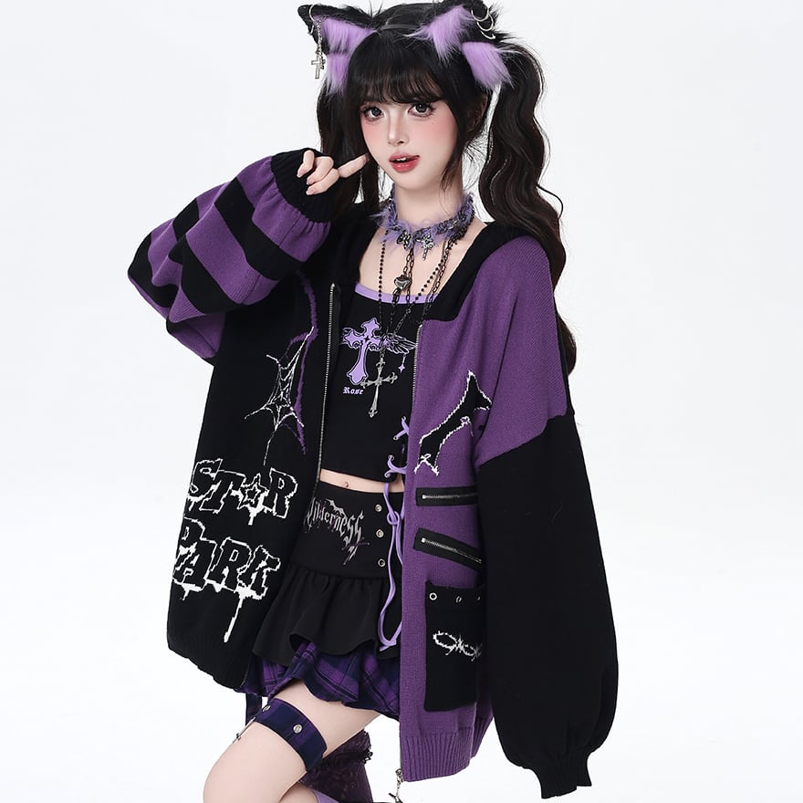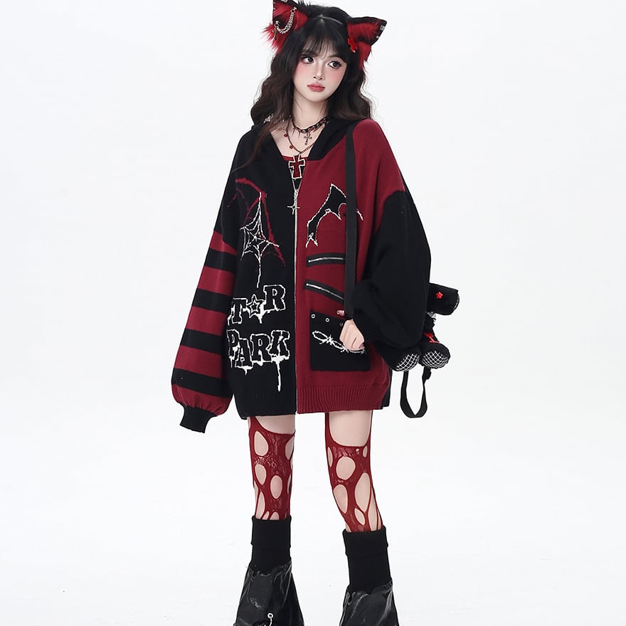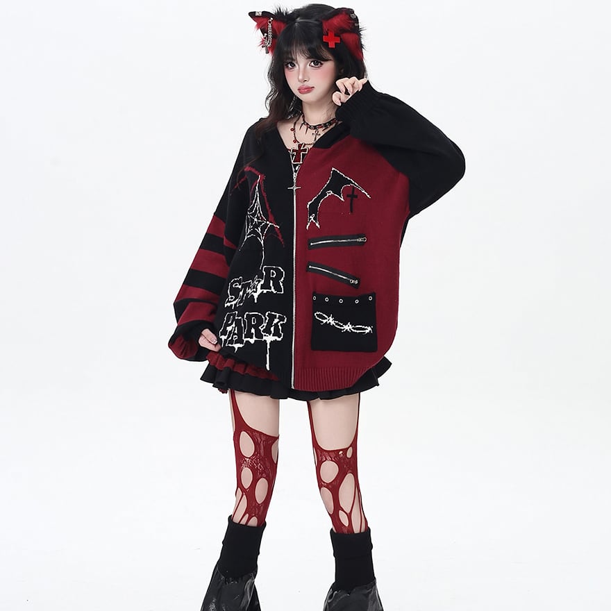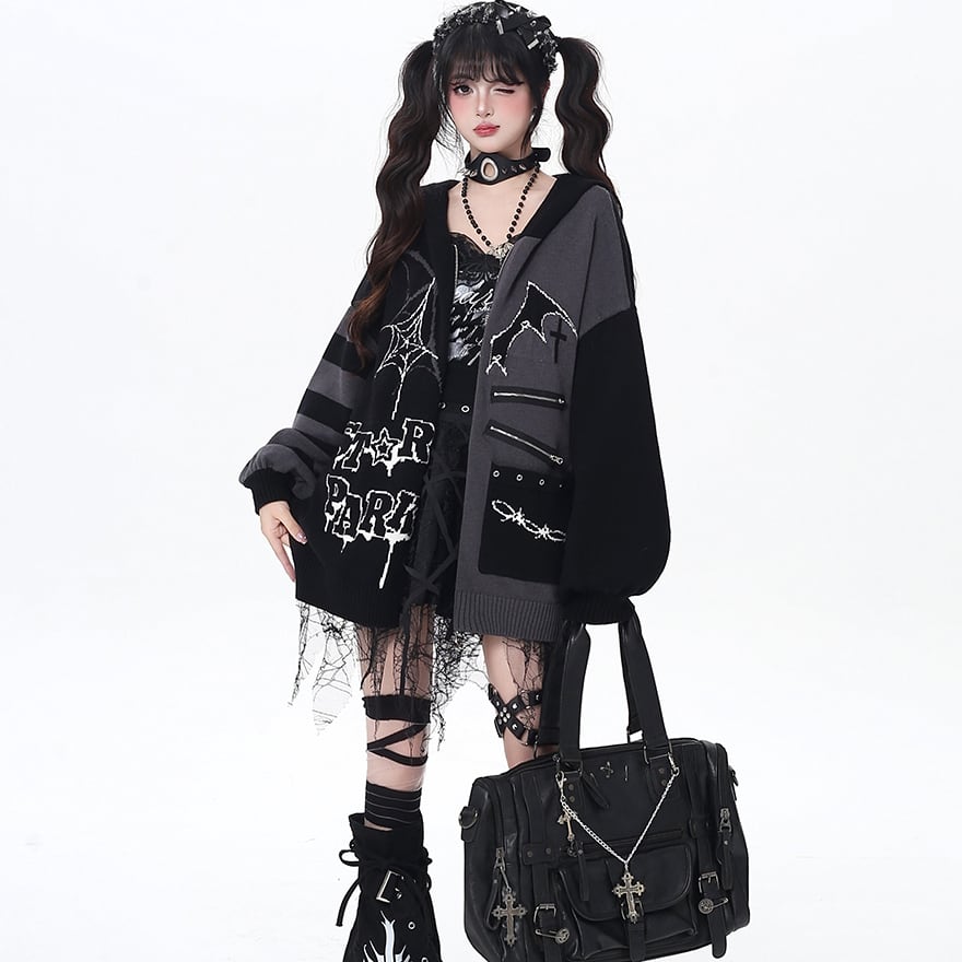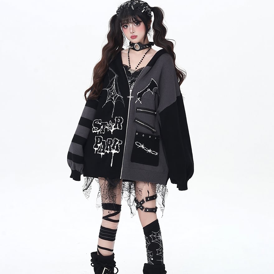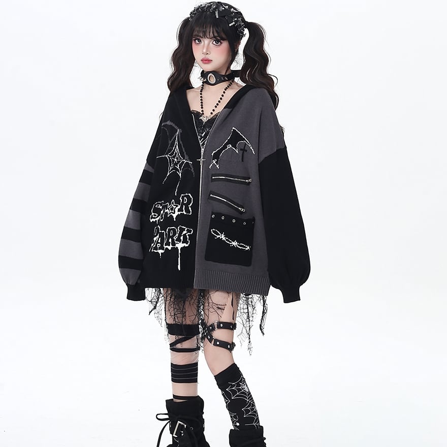 関連キーワード: #地雷系 #パンク #ニット #カーディガン #蜘蛛の巣 #コウモリ #推し活 #サブカル #病みかわ #ストリート #参戦服