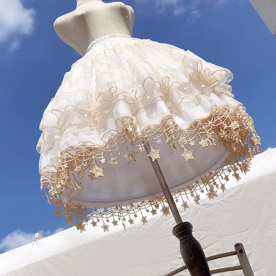 関連キーワード: #パニエ #ロリータ #見せパニエ #星モチーフ #レース #イベント衣装 #コスプレ #ボリュームアップ #キラキラ #夢かわいい