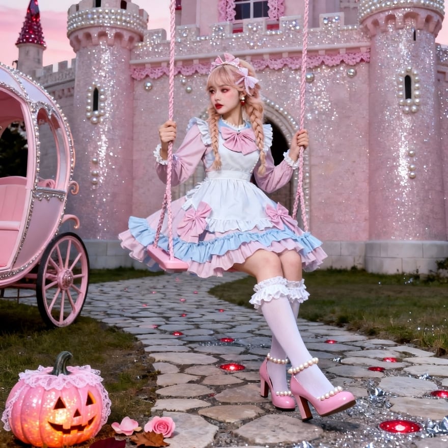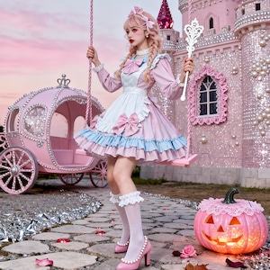 夢見るあなたへ贈る、最強の甘ロリスタイル。 まるで絵本から飛び出したような、パステルピンクと水色の配色がたまらなく可愛いロリータメイド服が登場しました。 フリル、リボン、パフスリーブなど、ロリータファッション好きの心をくすぐるディテールを詰め込んだ、特別な一着です。ハロウィンや文化祭のコスプレイベント、撮影会で、誰よりもゆめかわいいヒロインになりませんか?