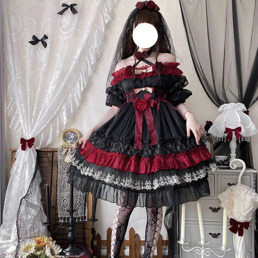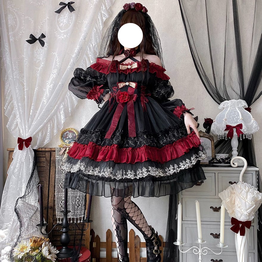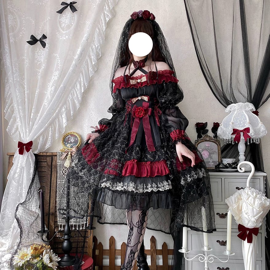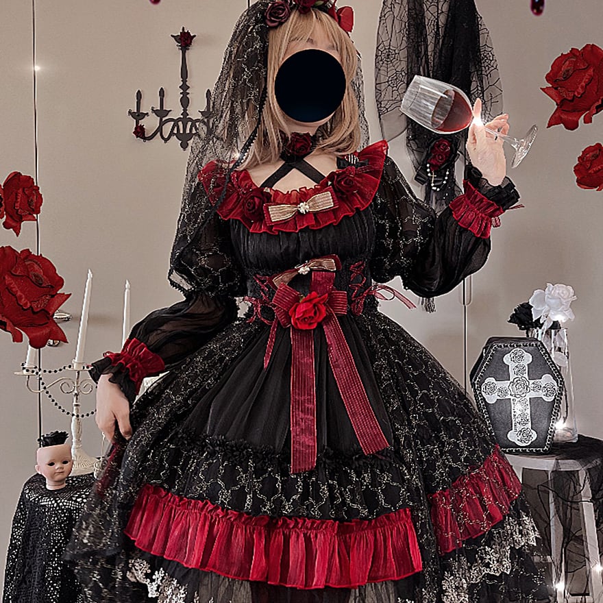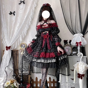 関連キーワード: #ゴスロリ #ロリータ #ドレス #セットアップ #黒赤 #ヴァンパイア #イベント衣装 #コンカフェ #ハロウィン #撮影会 #華やか #病みかわいい