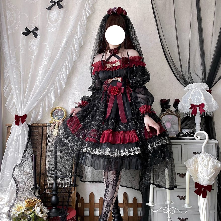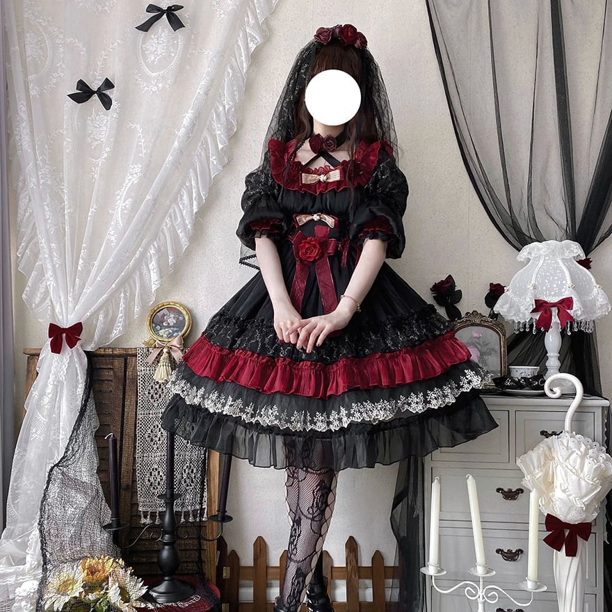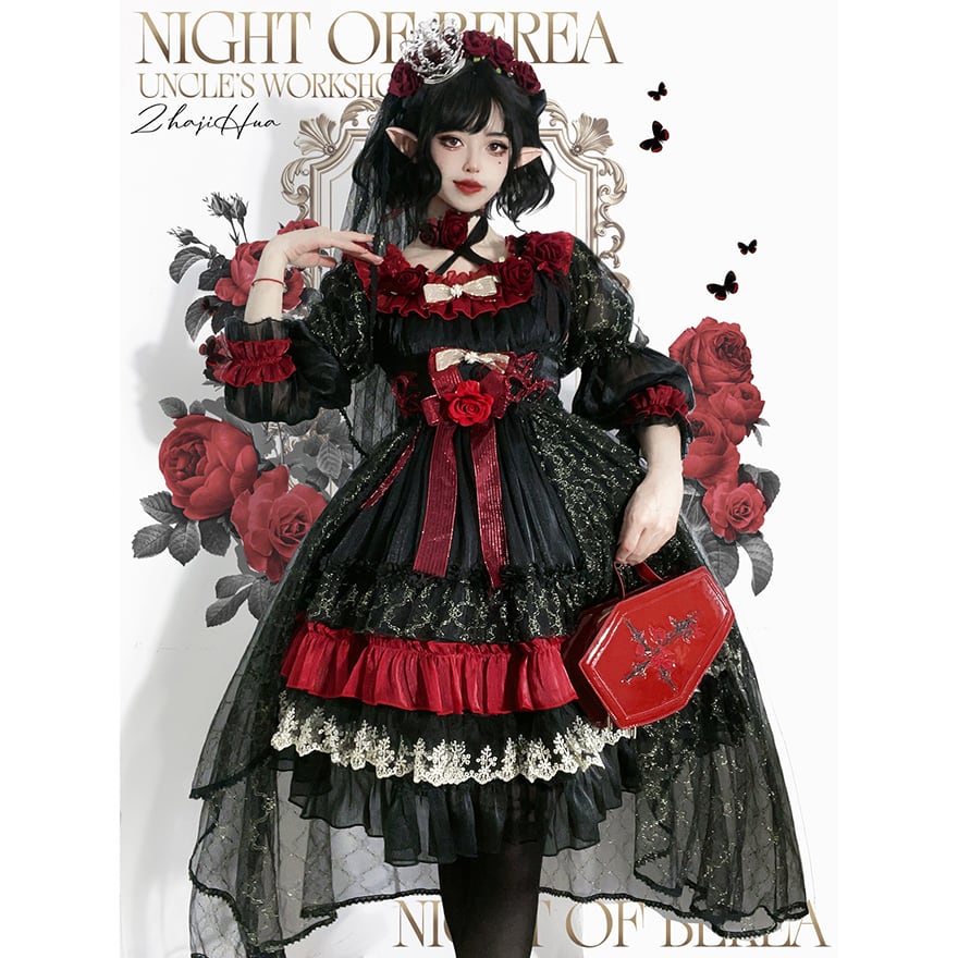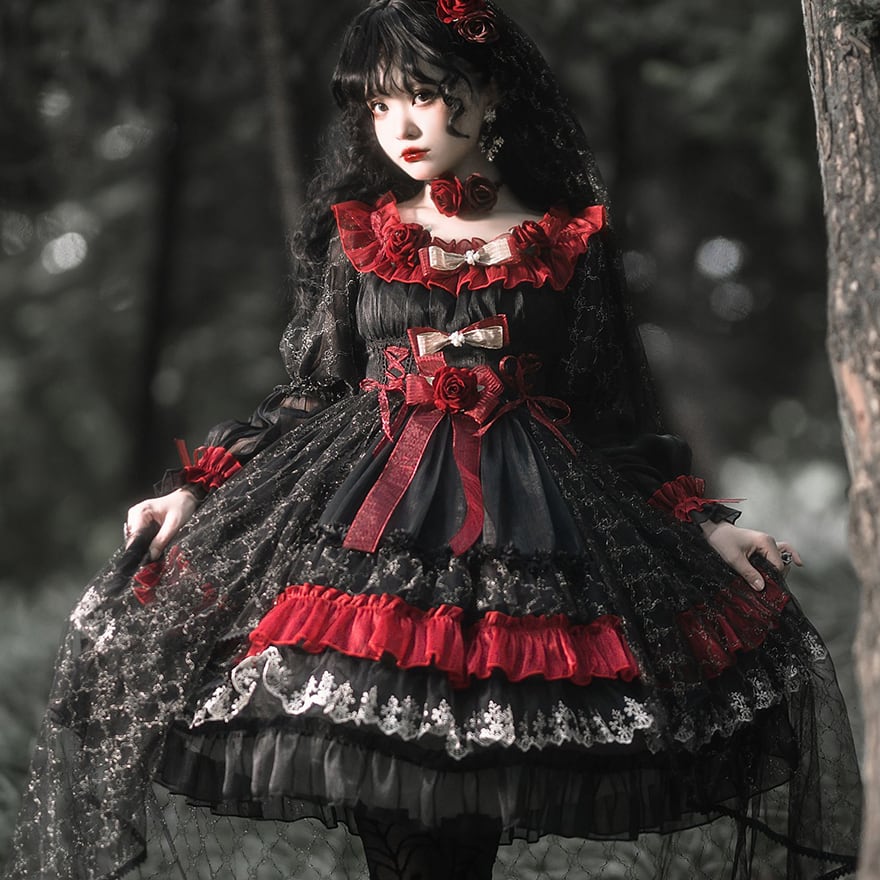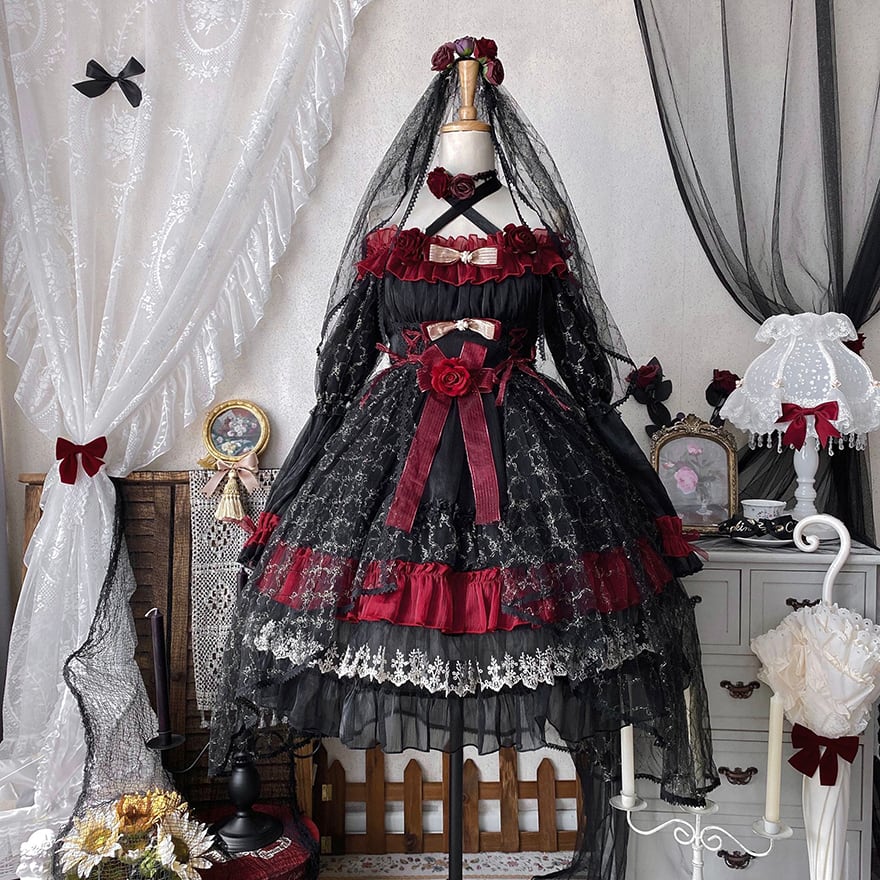 関連キーワード: #ゴスロリ #ロリータ #ドレス #セットアップ #黒赤 #ヴァンパイア #イベント衣装 #コンカフェ #ハロウィン #撮影会 #華やか #病みかわいい