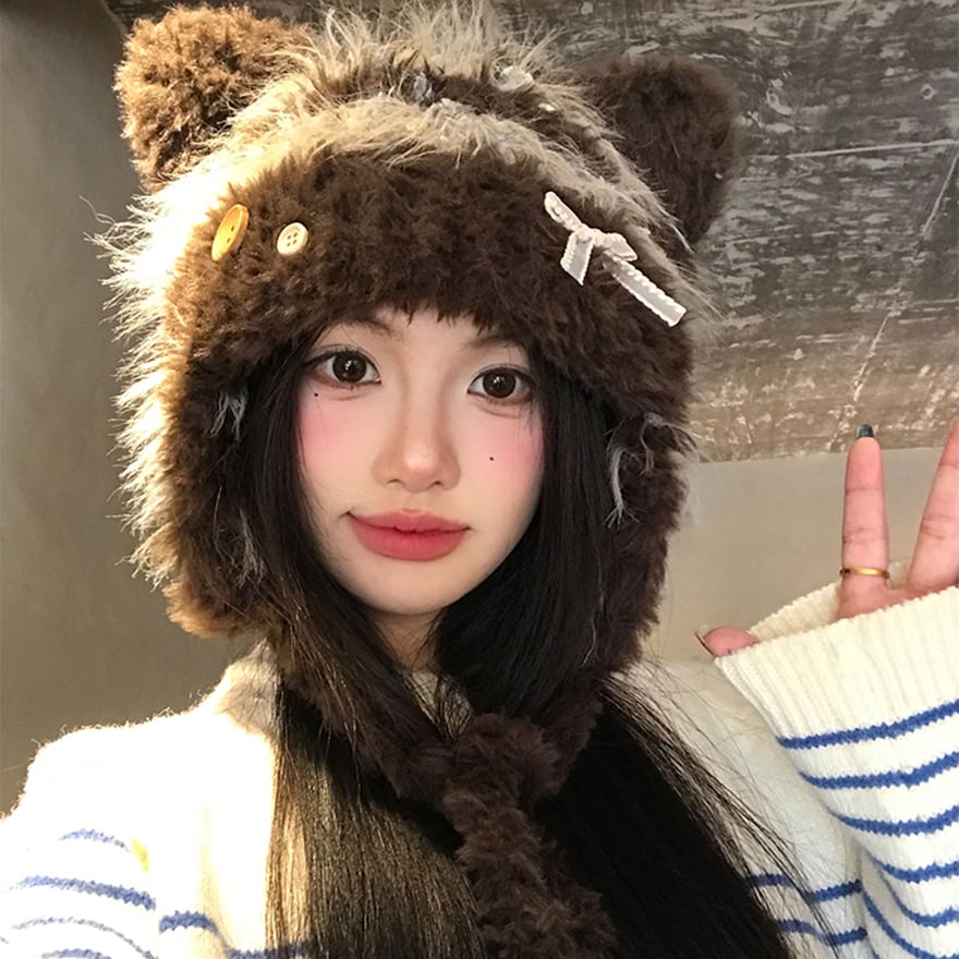 猫耳帽 ふかふか 防寒帽 パンク ストリート系