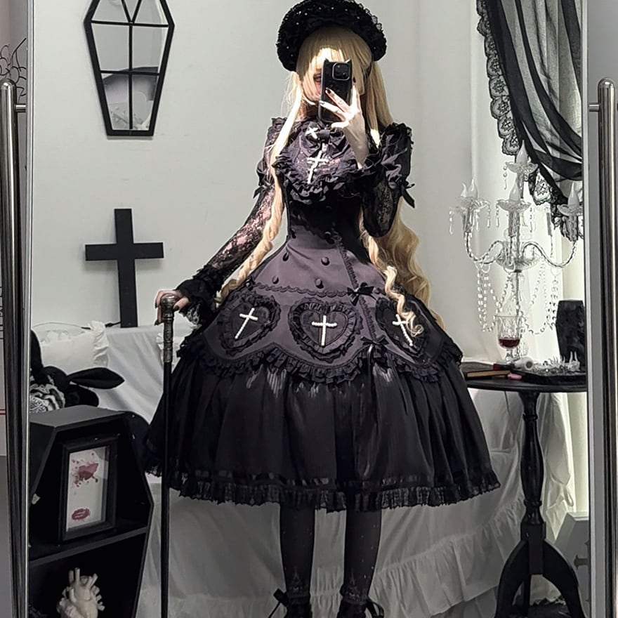 関連キーワード: #ゴスロリ #暗黒ロリィタ #ワンピース #十字架 #クロス #闇かわいい #ロング丈 #黒ロリ #神秘的 #病みかわいい