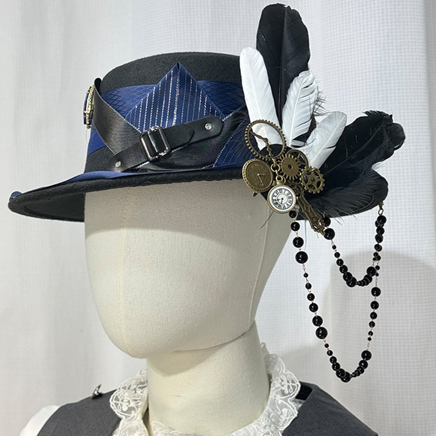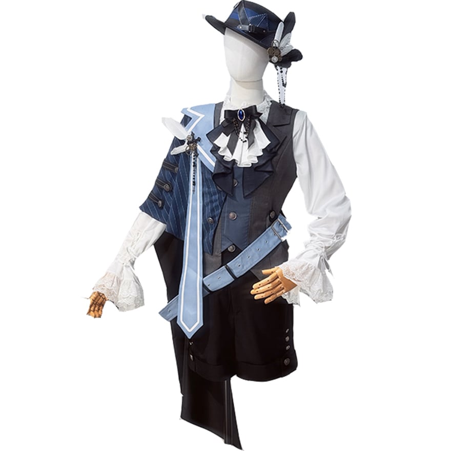 胸元の華やかなジャボや宝石の装飾が貴族的な気品を漂わせる一方で、歯車モチーフをあしらったブローチや斜め掛けのベルトがスチームパンクの世界観を演出。
