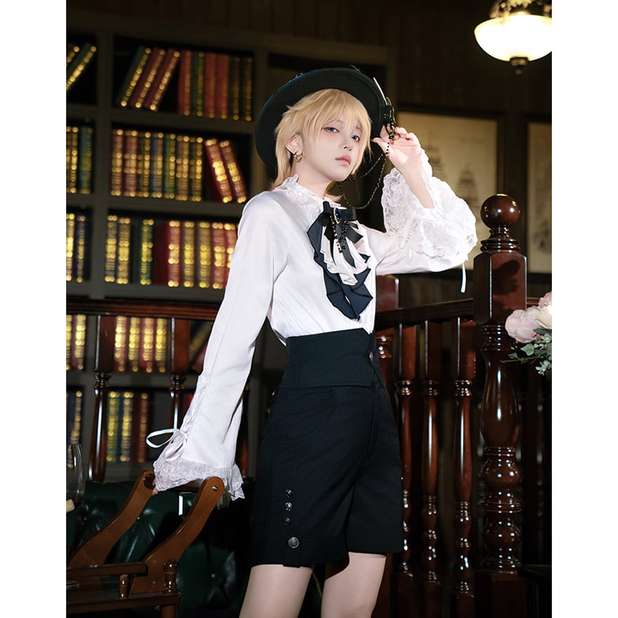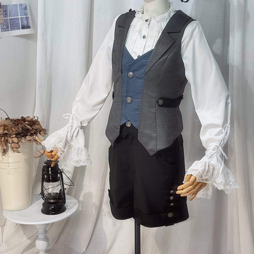 予約販売 王子系 少年装 スチームパンクセット CastleToo 2点セットブラウス ネックリボン レース プリンスコーデ
