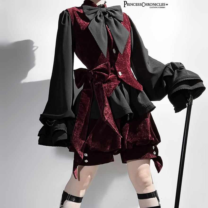 関連キーワード: #王子系 #少年装 #皇子系 #ハーフパンツ #かぼちゃパンツ #ボルドー #ベルベット #男装 #コスプレ #ゴスロリ