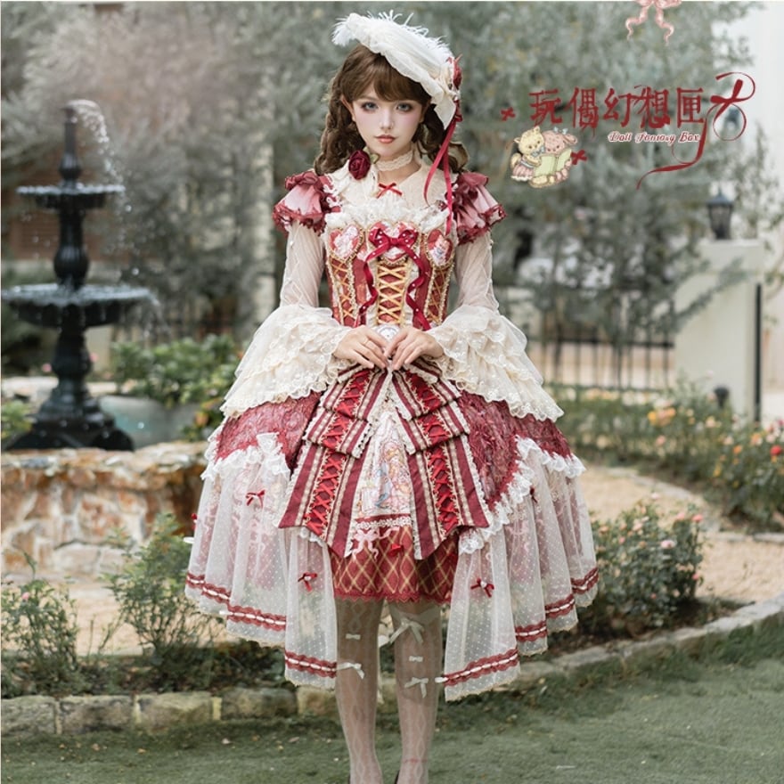ボンネット・ブラウス・ジャンパースカート・バックリボン・装飾パーツすべてが揃った “完全版セット” だから、届いた瞬間にそのまま着用可能。
