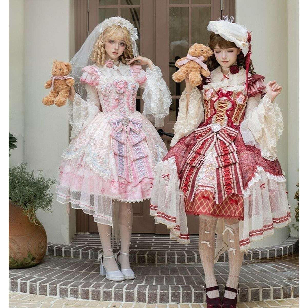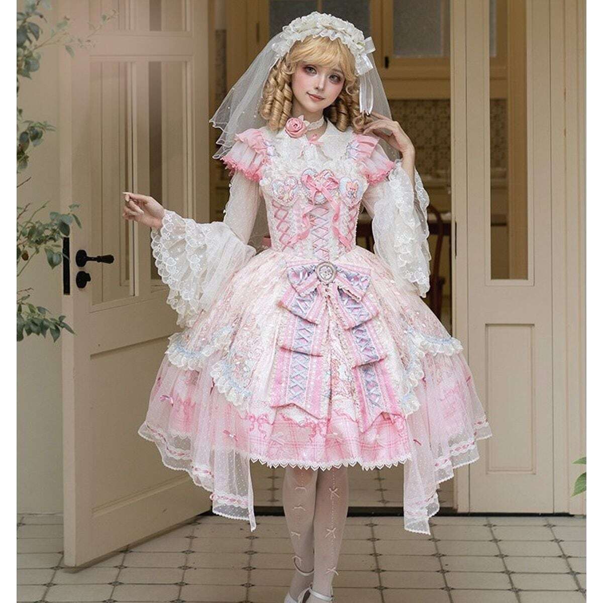 【フルセット割り 送料無料】プリンセスロリータ ボンネット+ブラウス+ジャンパースカート+リボン一式|クラシカル&ゴスロリ衣装|イベント・撮影会・コンカフェ用