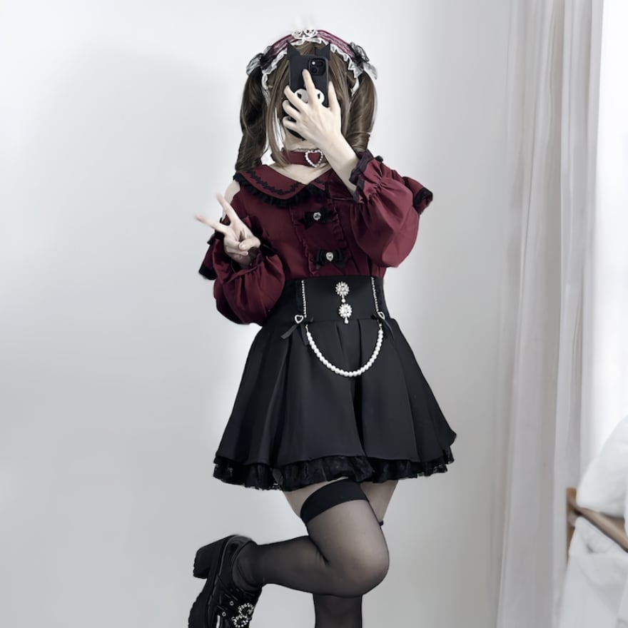 1枚で“地雷系の完成形”といえるほど主役級のトップスに仕上がっています。