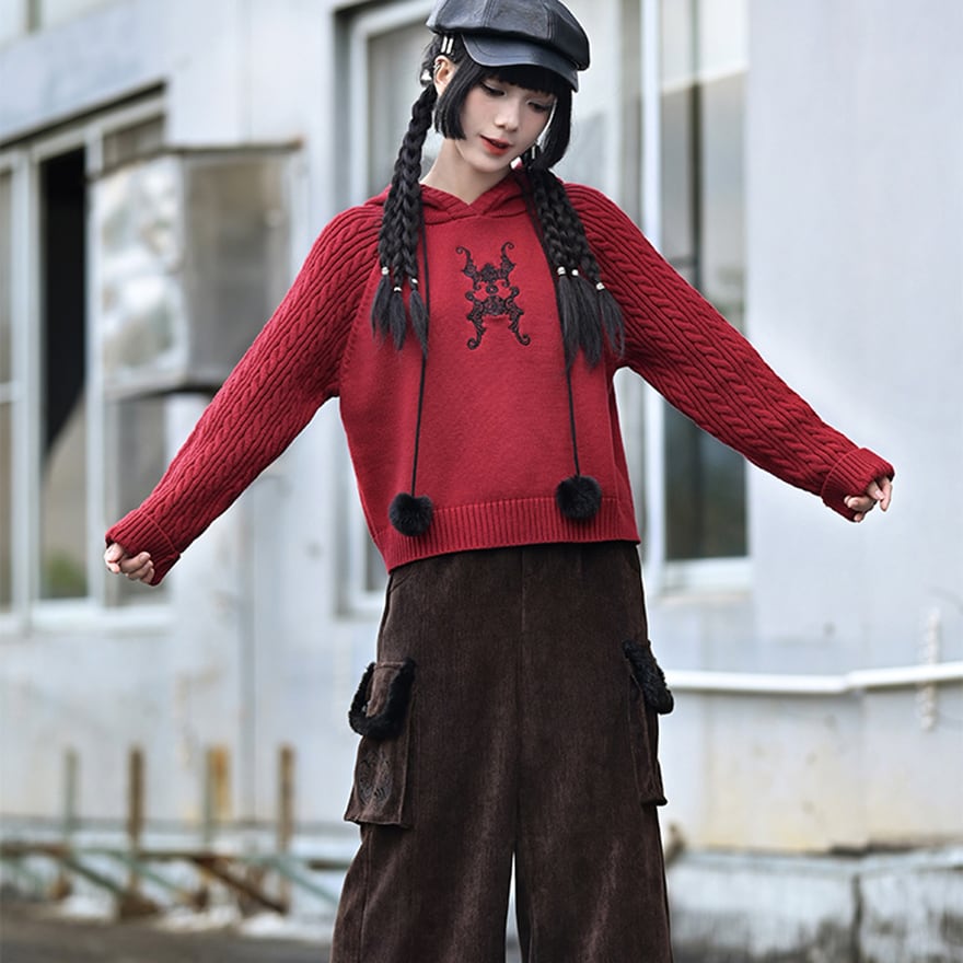 関連キーワード: #古怪舎 #中華サブカル #チャイナ風 #赤ニット #ケーブル編み #刺繍 #フーディ #ポンポン #冬コーデ #個性派