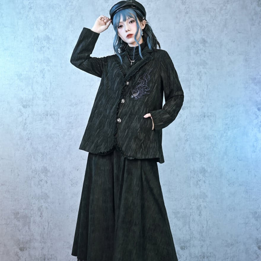関連キーワード: #古怪舎 #中華ゴシック #サブカル #黒ジャケット #刺繍 #コーデュロイ #大人可愛い #モード系 #V系 #暗黒系
