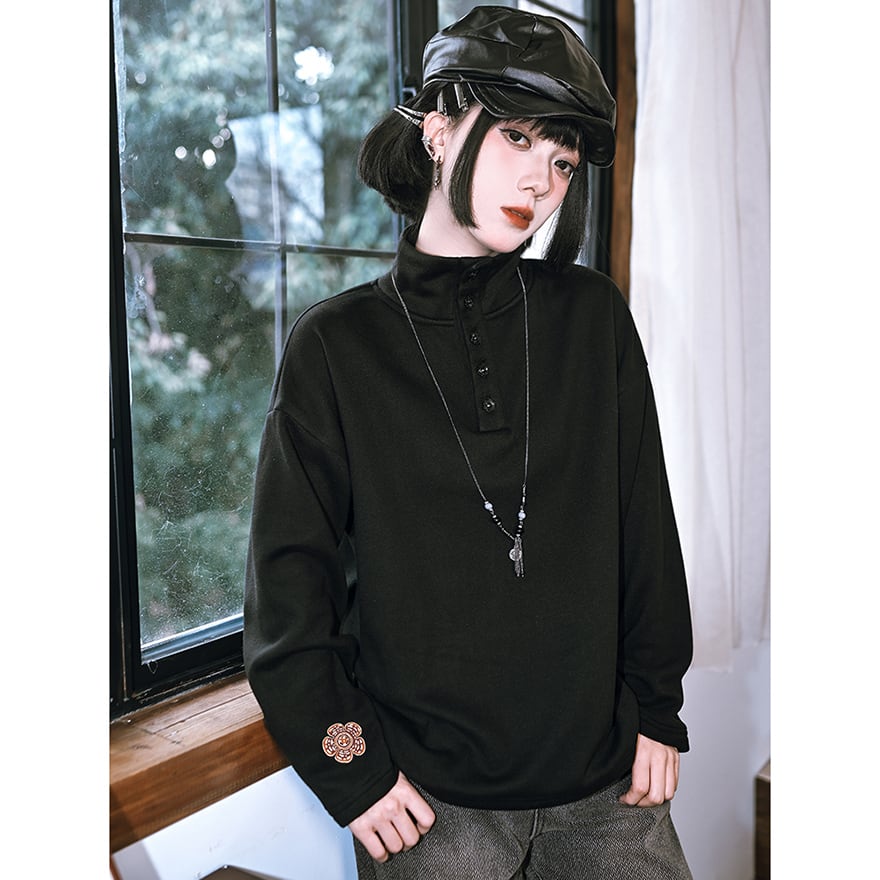 関連キーワード: #古怪舎 #中華サブカル #ハイネック #黒シャツ #刺繍 #モード系 #ユニセックス #ストリート #長袖 #シンプル