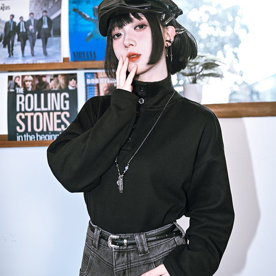 サブカル系中華 ハイネック コットン 長袖シャツ 大人ゴシック