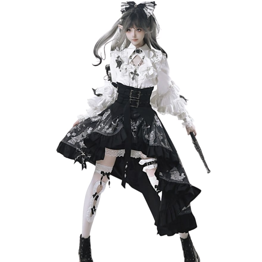 セットアップ(6点セット~上下セット、コルセット、アクセサリー、リボン、十字架)