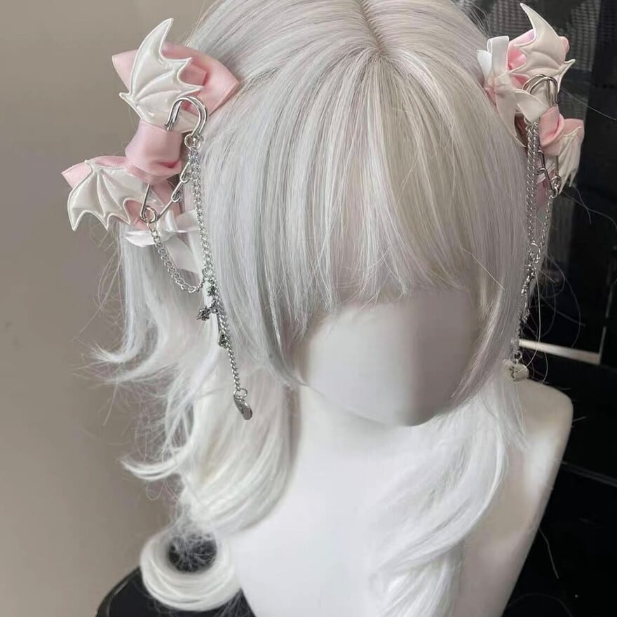 地雷系 デビルウィング×十字架 チェーン付き髪飾り|ゴスロリ・病みかわ・量産型対応 ヘアアクセ