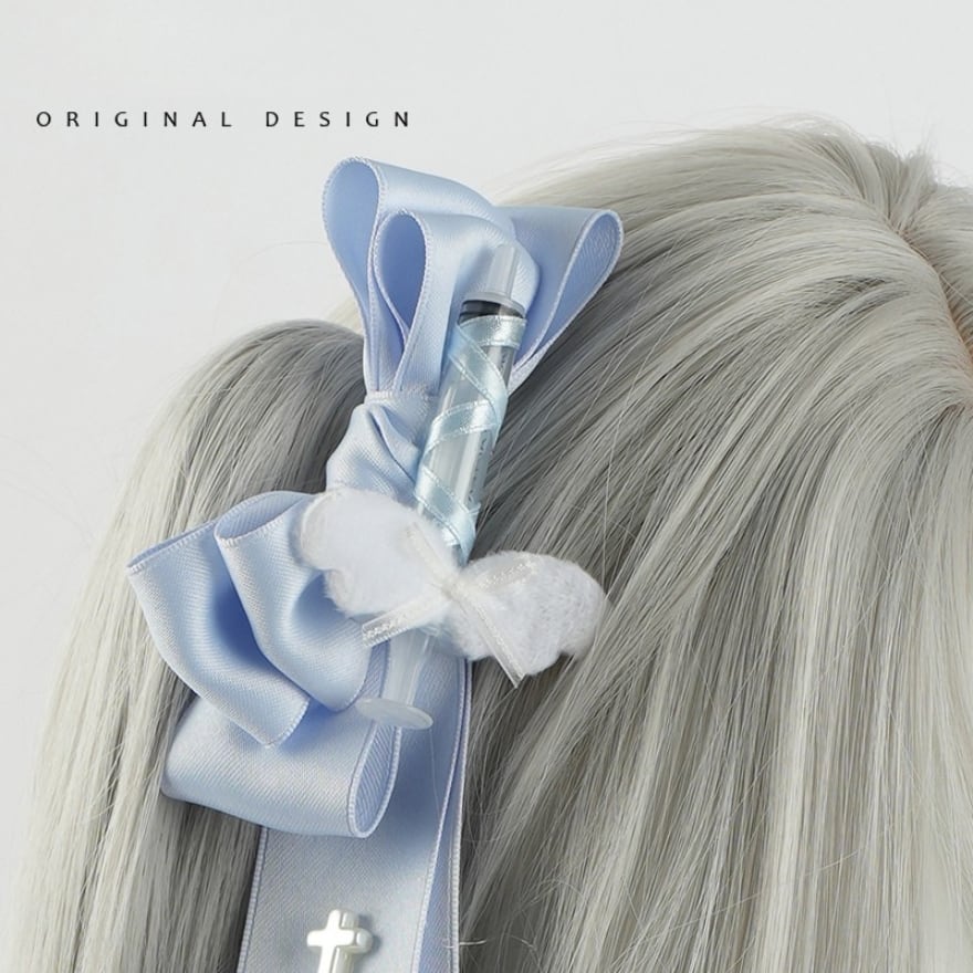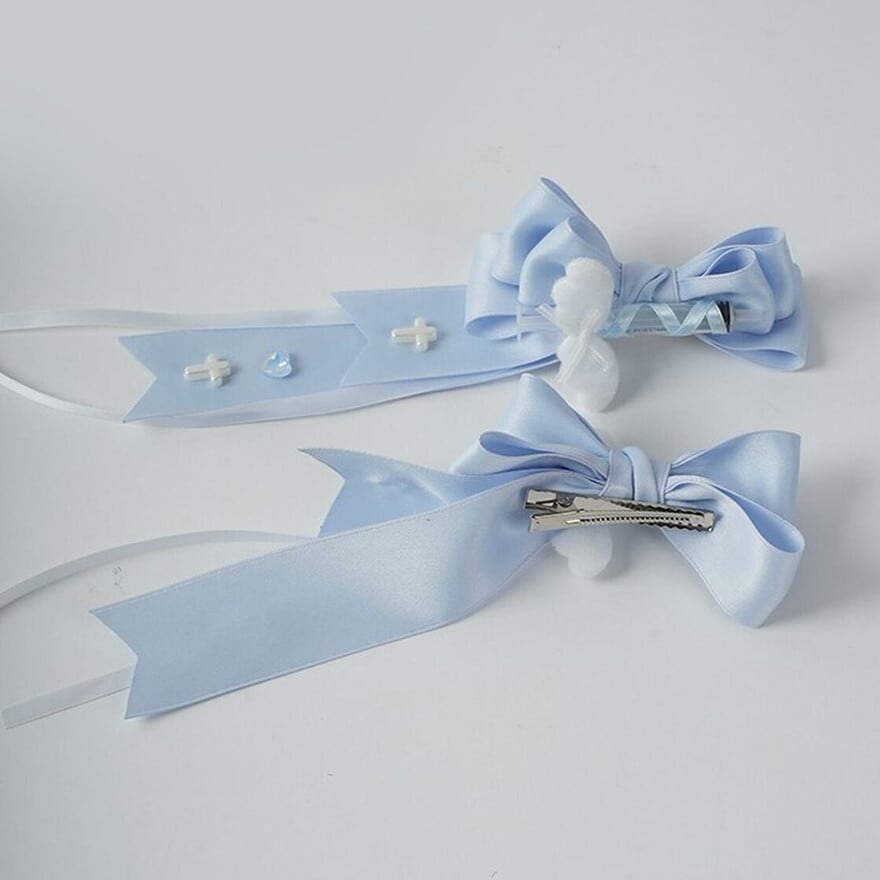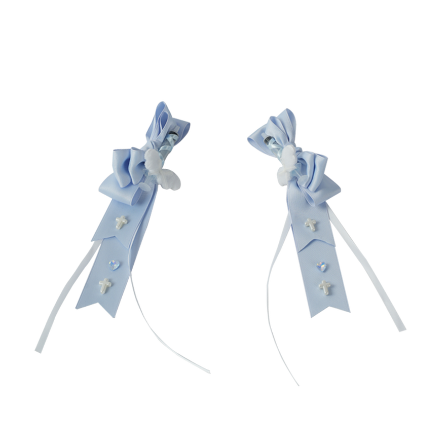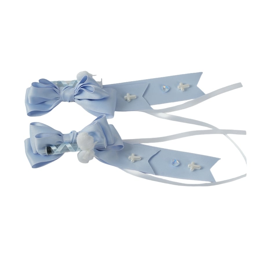 夢かわいい 天使ブルー 十字架リボン ツインテール用ヘアクリップ(2点セット)