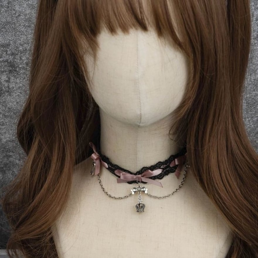 クラウン チャーム リボン レース チョーカー ゴスロリ 地雷系 アクセサリー 2カラー