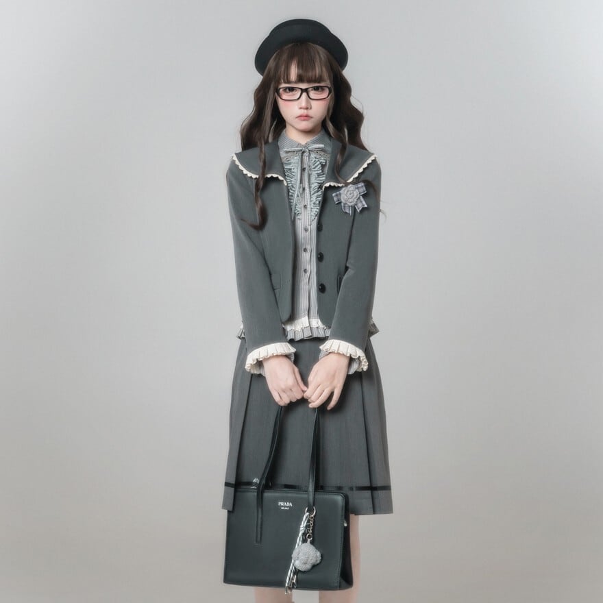 量産型ロリィタ スーツ 4点セット 学園風 制服 胡桃木