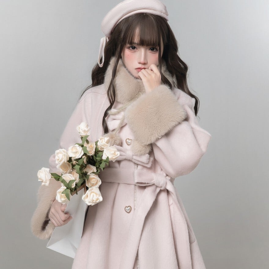 淡いピンクのコートとの相性も抜群で、冬のロリータコーデにぴったりのアイテムです。