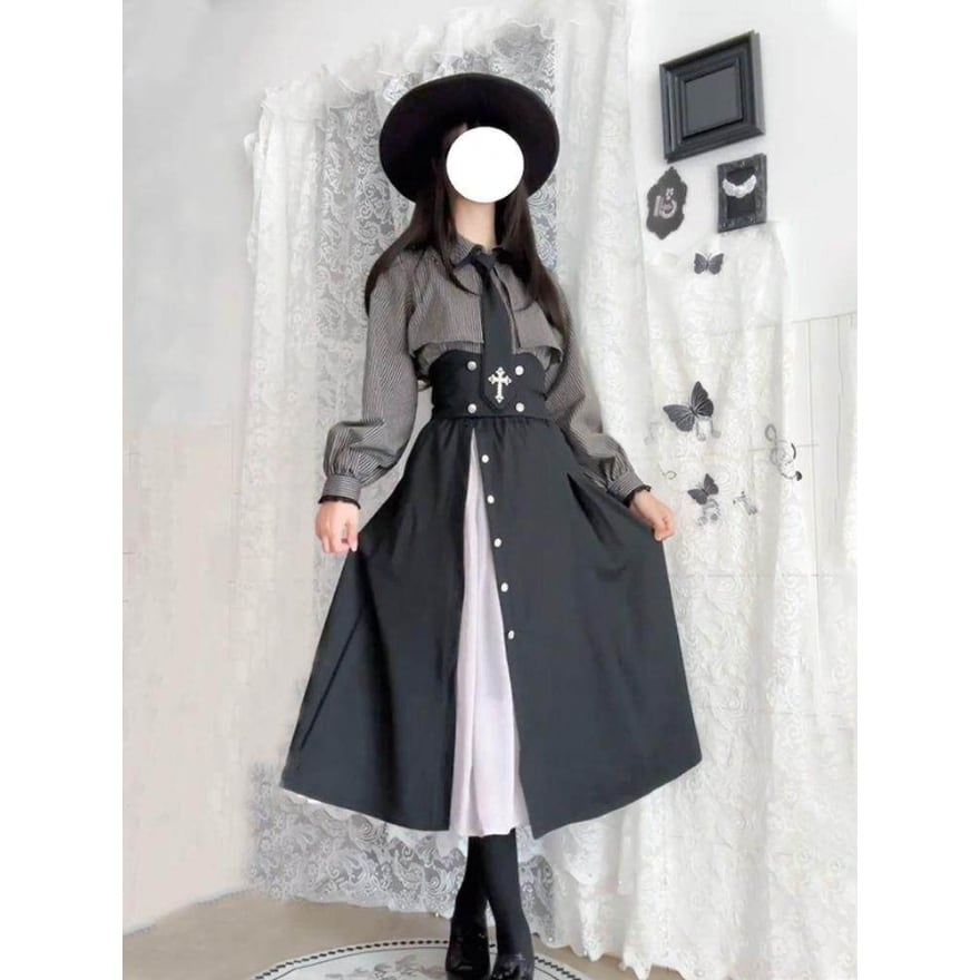 クロスモチーフ コルセットベルト付き ゴシックロリィタ セットアップ|トップス+スカート 3点セット