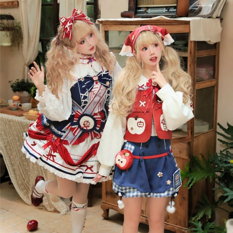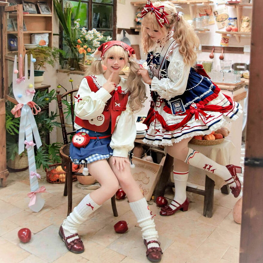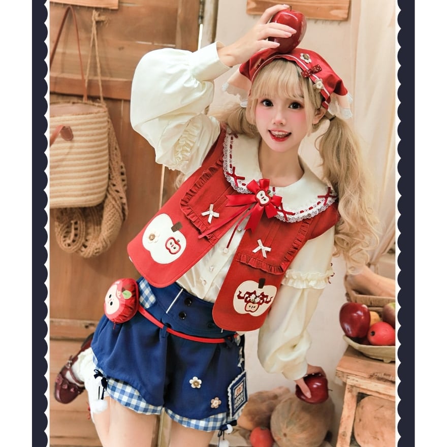コスチューム衣装 少年装 コンカフェ衣装 りんごモチーフ 刺繍 セットアップ 撮影会 イベント衣装