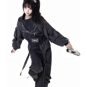 サイバーパンク ショートジャケット フーディ ストラップベルト ハーネスベルト