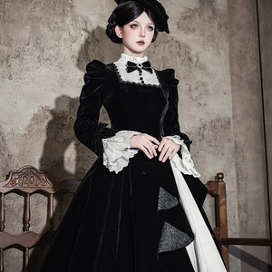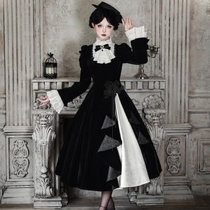 クラロリワンピースセット (ロングOP+リボンタイ+ネックリボン+礼帽+刺繍ブローチ)