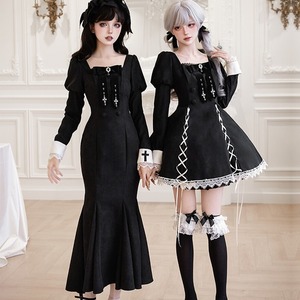 ゴスロリ 蔷薇人形 3点 セットアップ ドレス マーメイドスカート 付け襟カバー ネックリボン コンカフェキャスト衣装 PUJI