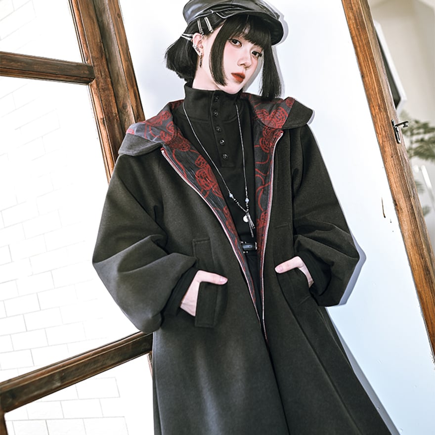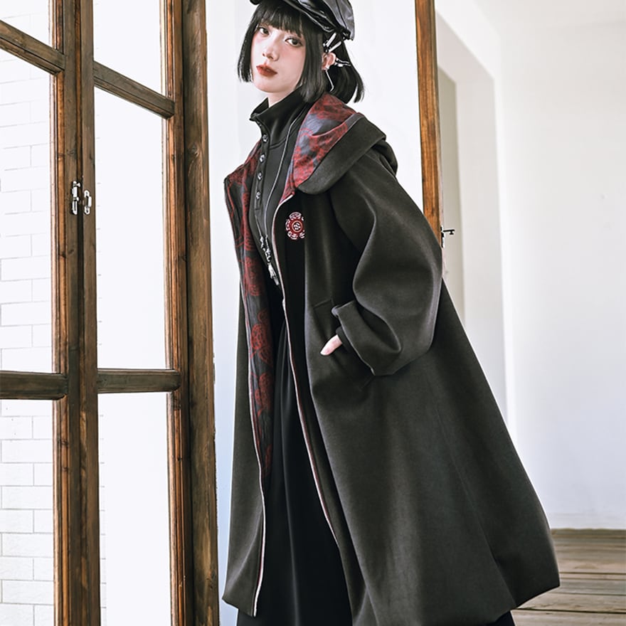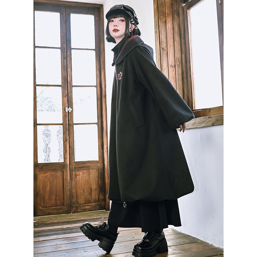 関連キーワード: #古怪舎 #中華ゴシック #ロングコート #裏地柄 #刺繍 #黒アウター #オーバーサイズ #ストリート #冬服 #個性的