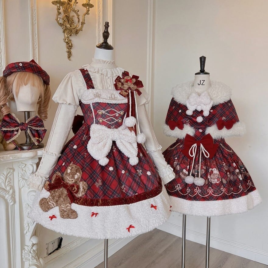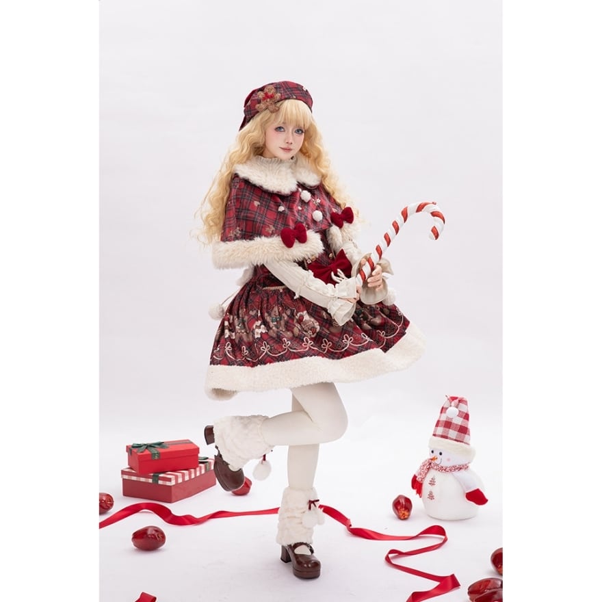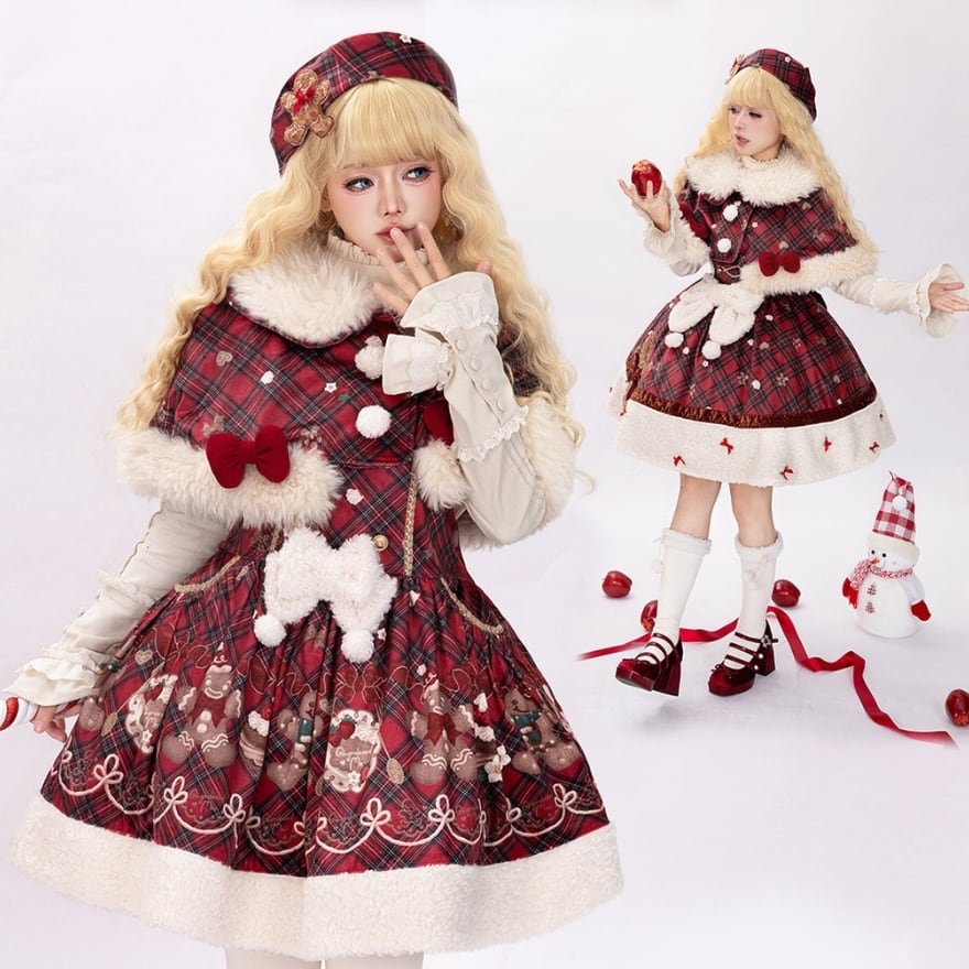 夢かわいい ロリィタ チェック柄 ファーケープコート