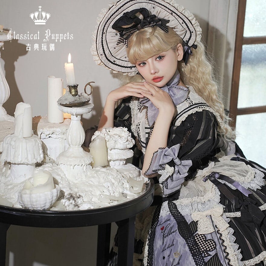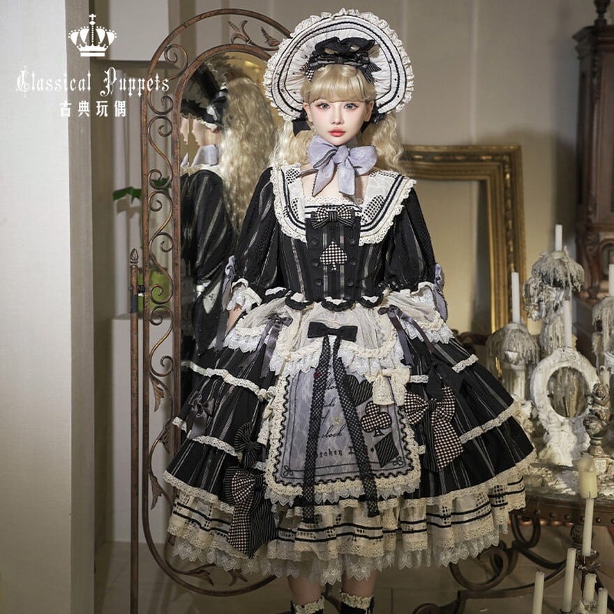 アンティークドール 優雅なお茶会 クラシカルワンピース ボンネット付属 スタジオ撮影用 衣装 イベント 舞台衣装