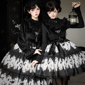 ゴスロリ ワンピース ロング丈 ネックスレス付き ケーキスカート PUJI