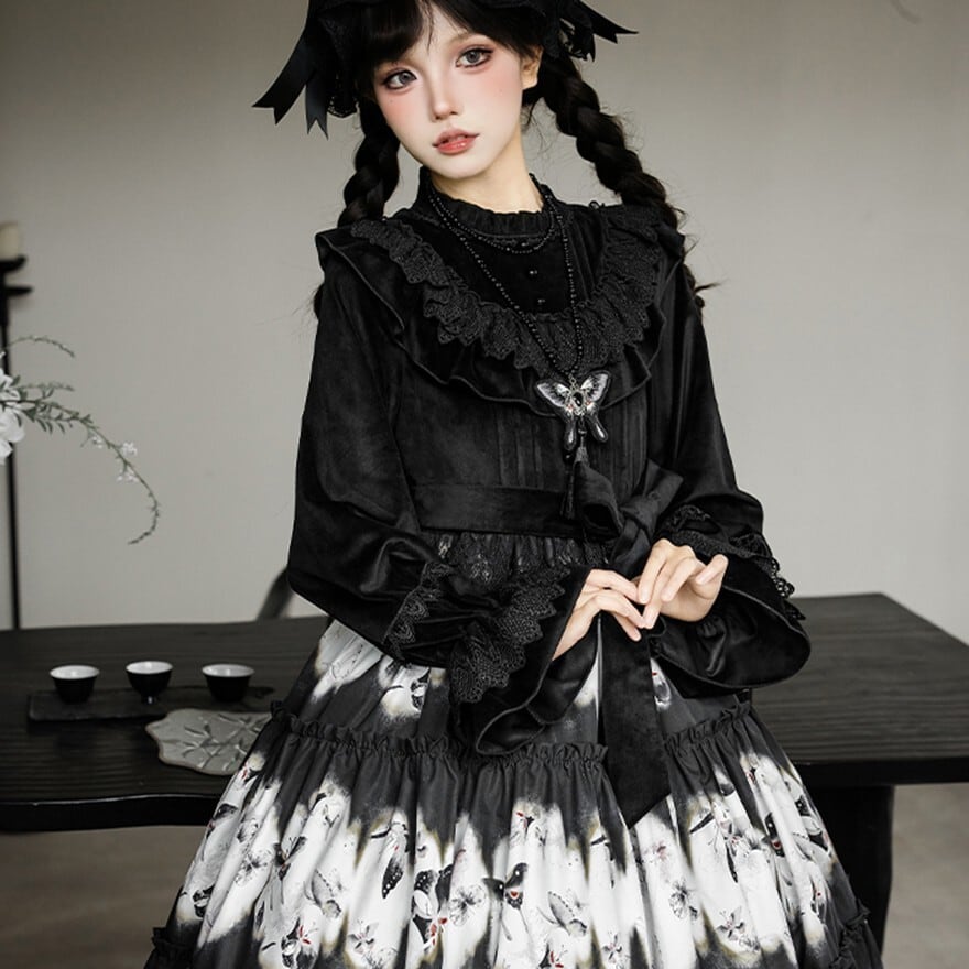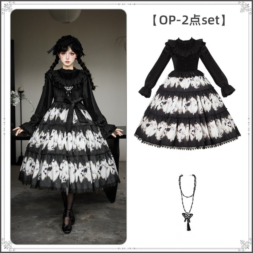 関連キーワード: #ロリータ #クラロリ #ワンピース #モノトーン #レース #エレガント #シック #可愛い #蝶モチーフ #セットアイテム