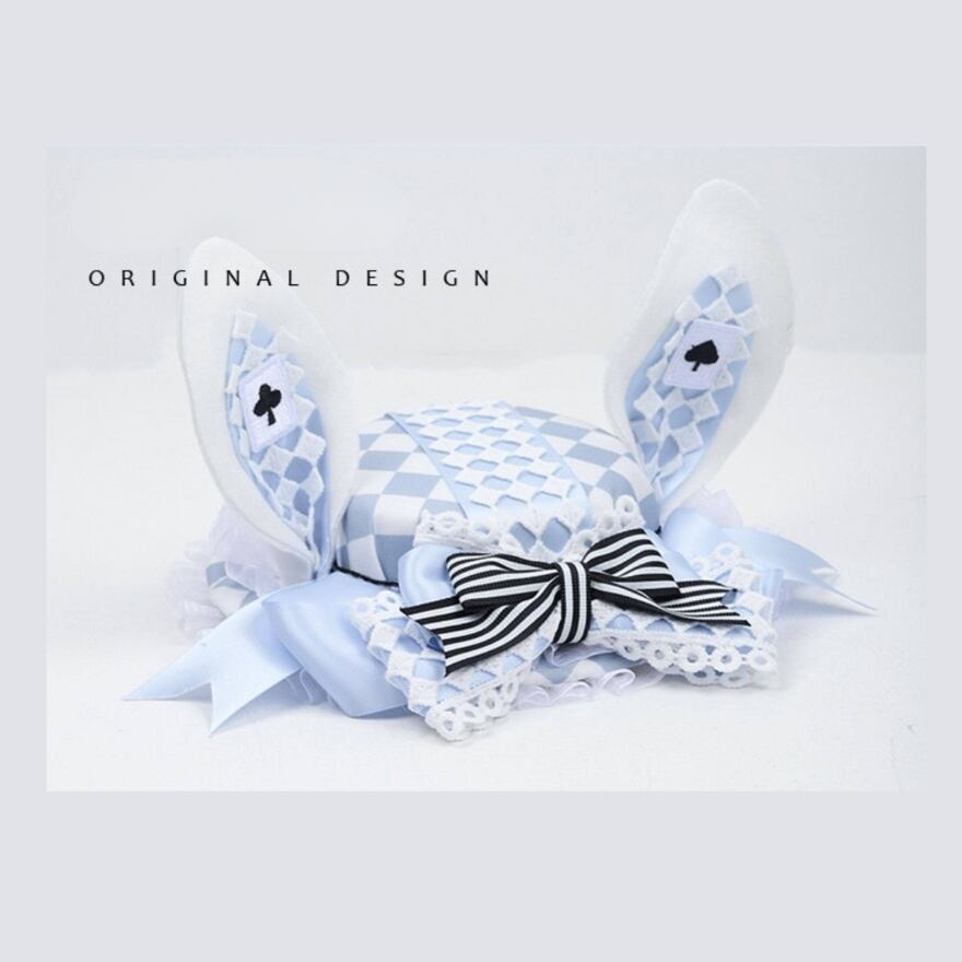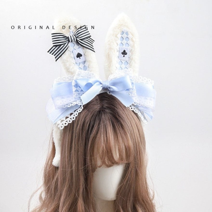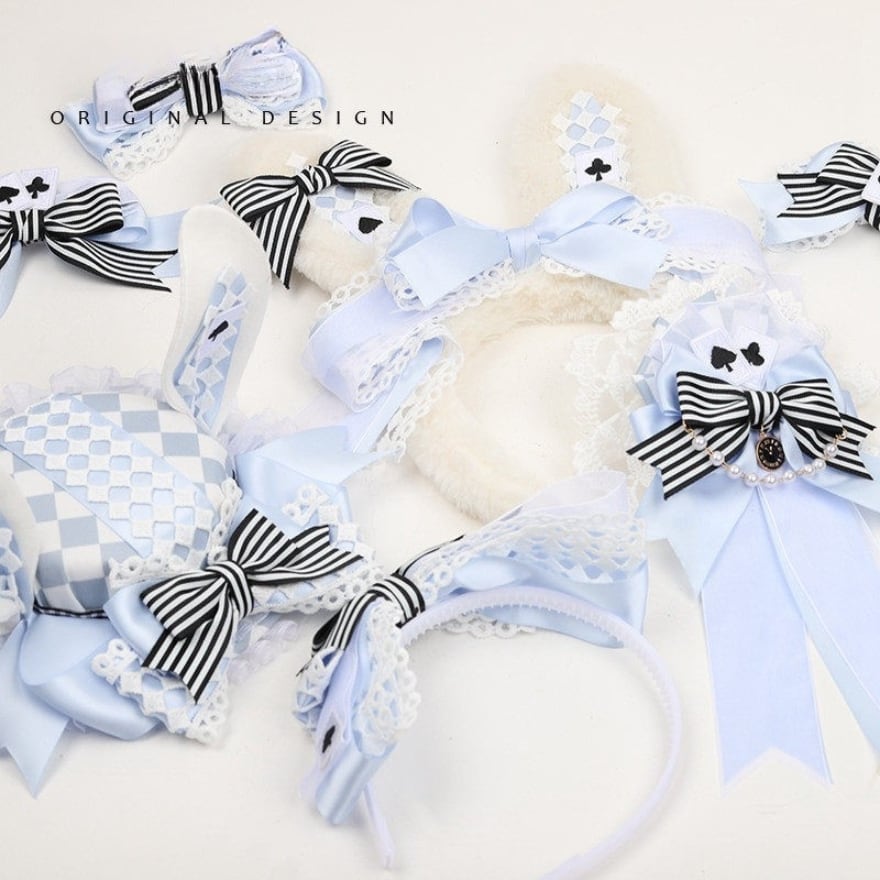 ブラック×ホワイトのストライプリボンに、トランプモチーフを添えたクラシカルなロリィタヘアアクセサリー。
