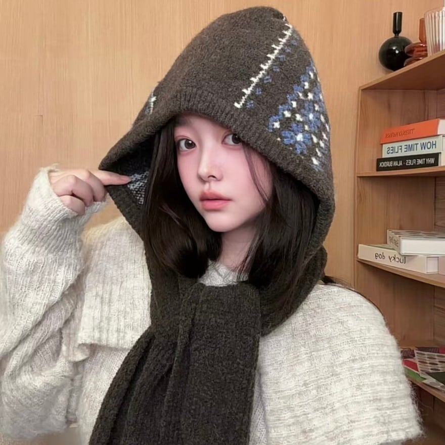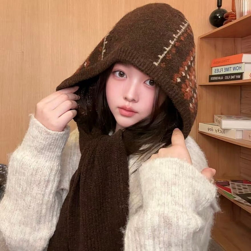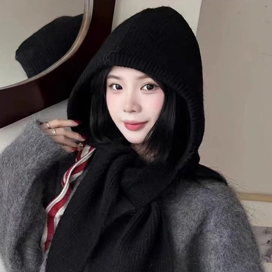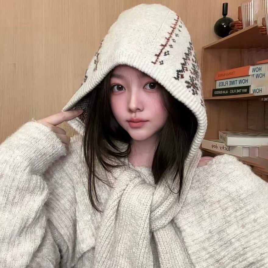 ロリィタ系 ふんわりニット バラクラバ マフラー 一体型 フード付き 防寒小物