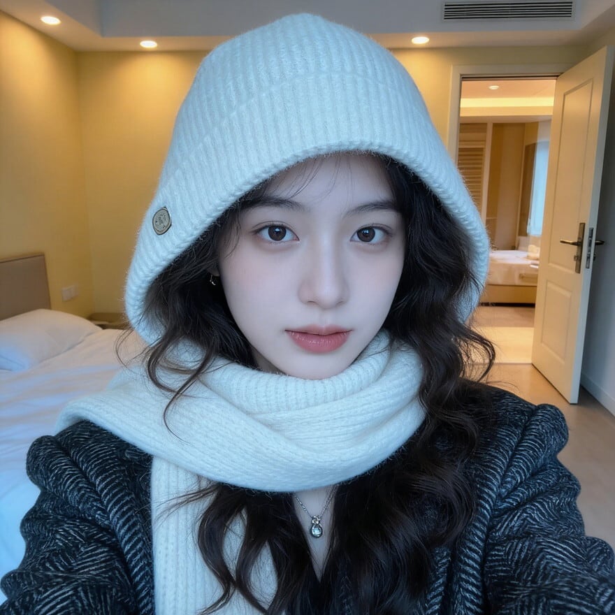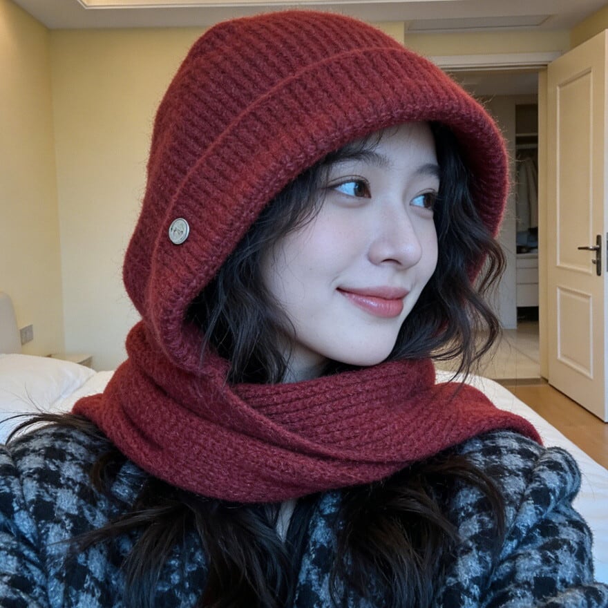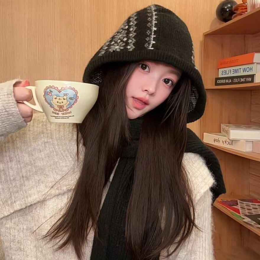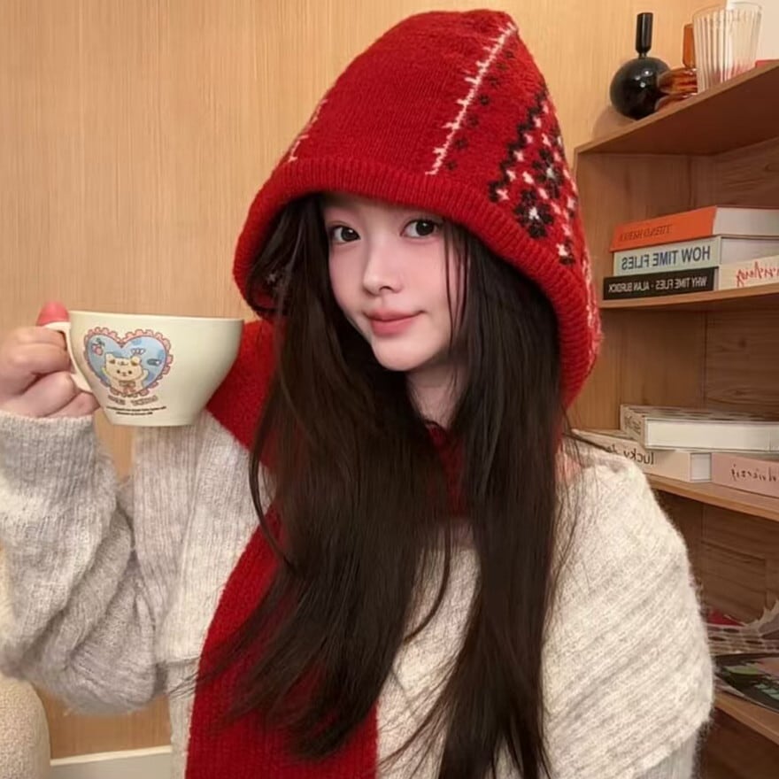 ロリィタ系 ふんわりニット バラクラバ マフラー 一体型 フード付き 防寒小物