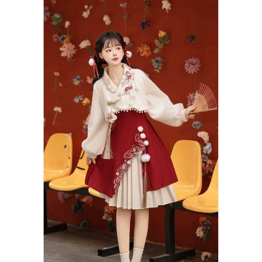 ・中華モチーフ刺繍を施した上衣(ショート丈)