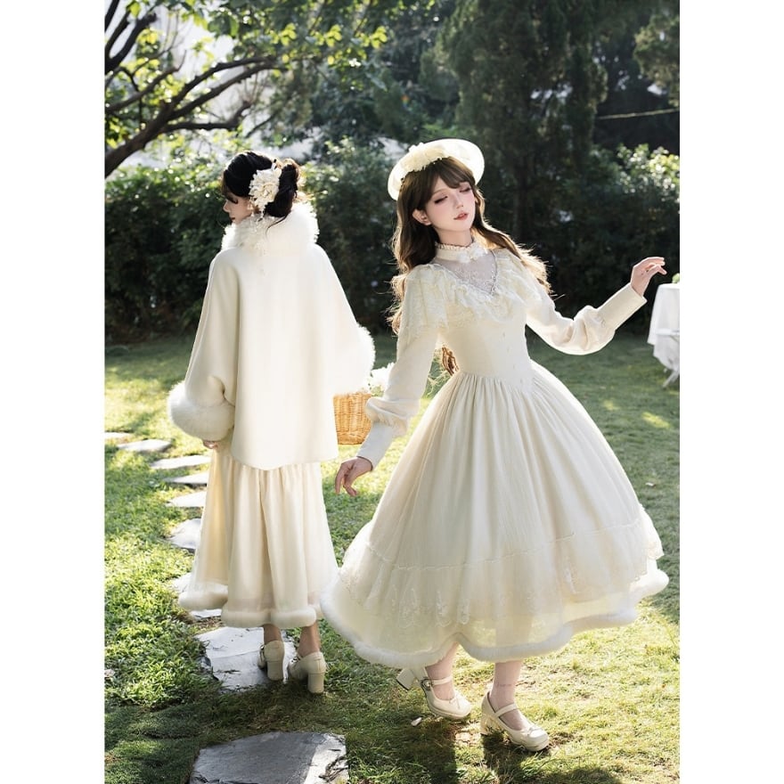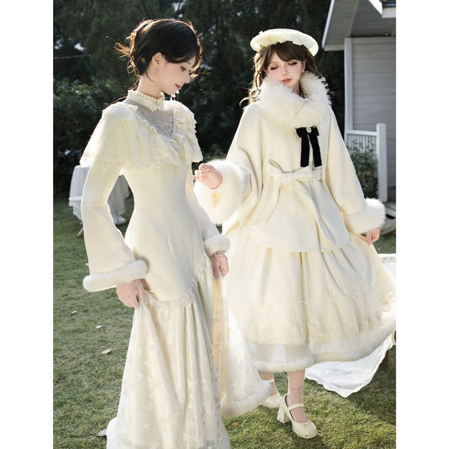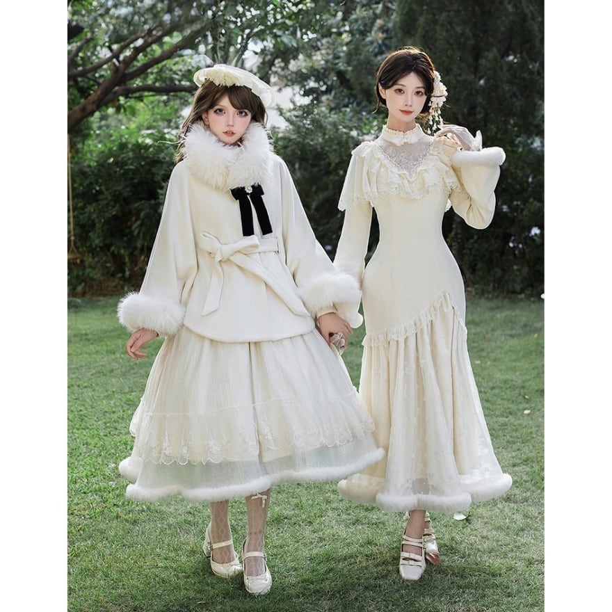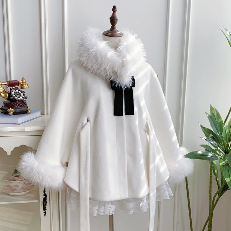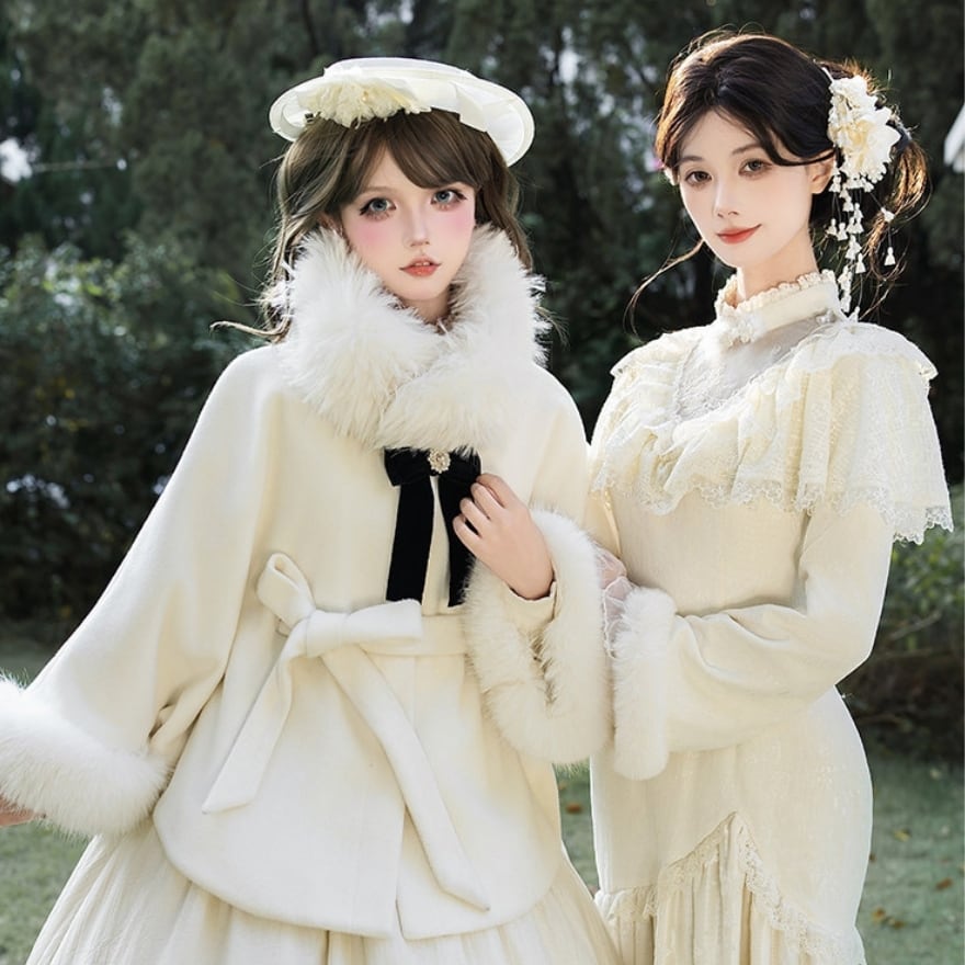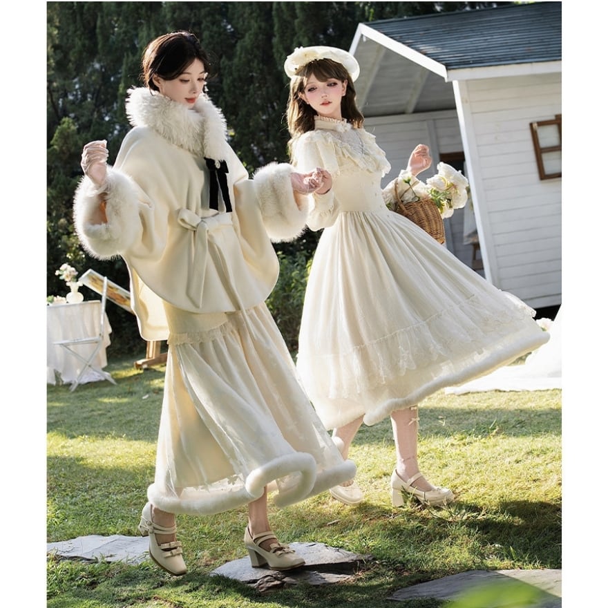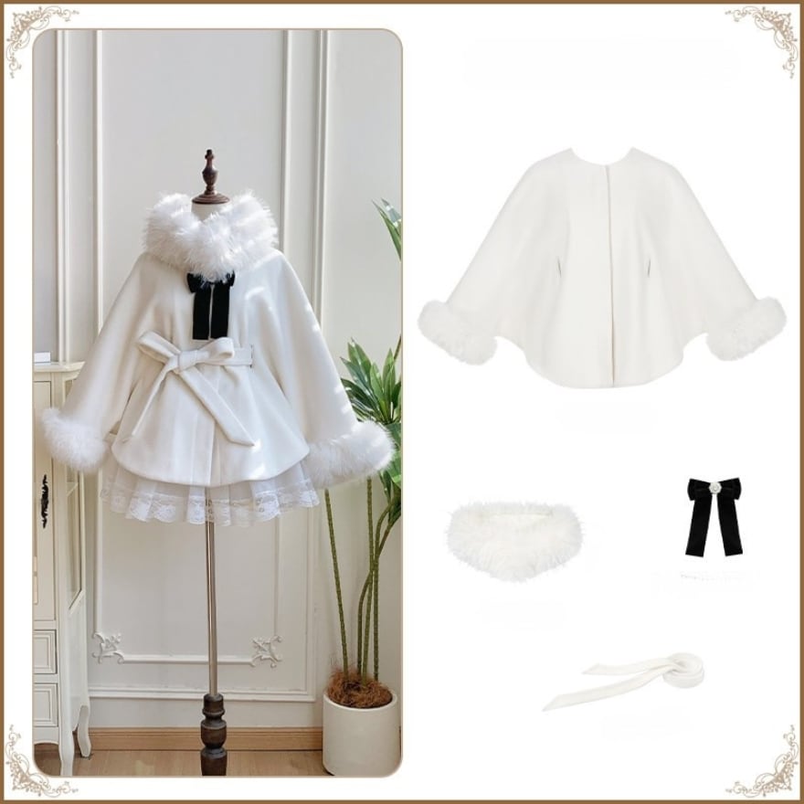 【予約商品】ロリィタ ファーカラー付きケープ風コート 4点セット 冬アウター