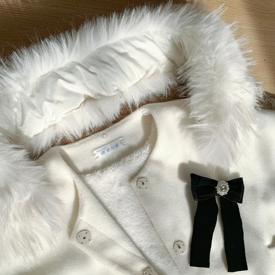 コート+ファーカラー+リボンブローチ+ベルト(4点セット)