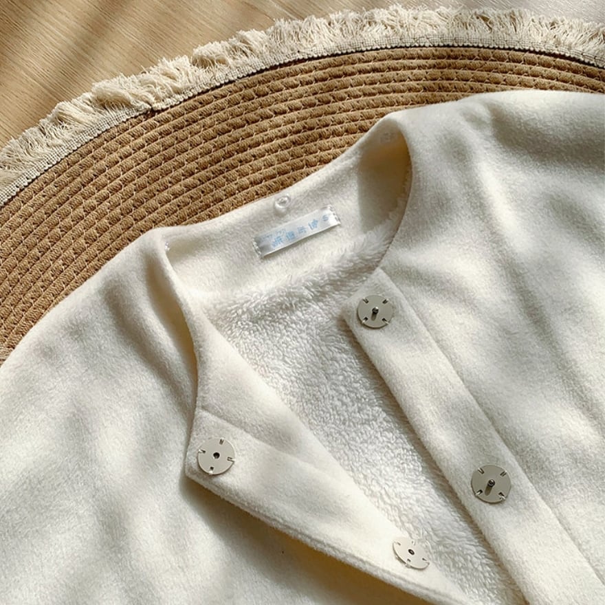 柔らかな毛呢(ウール調)素材を使用したコートは、