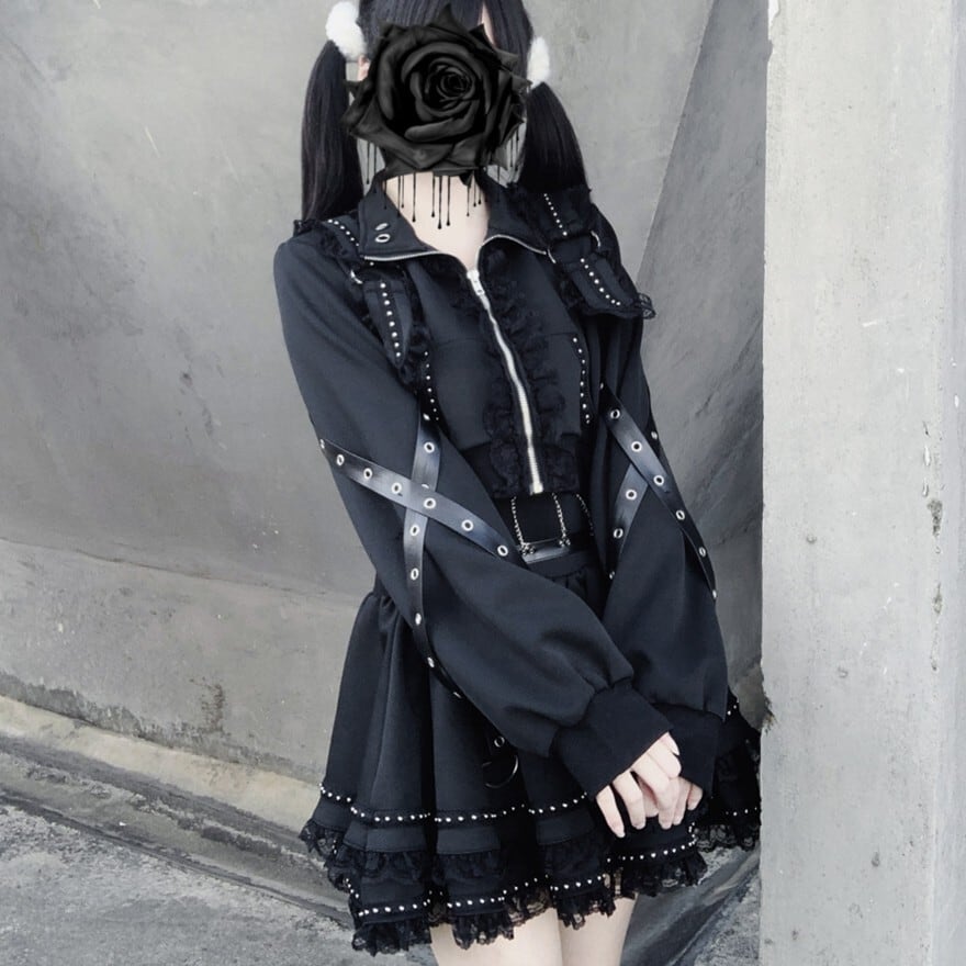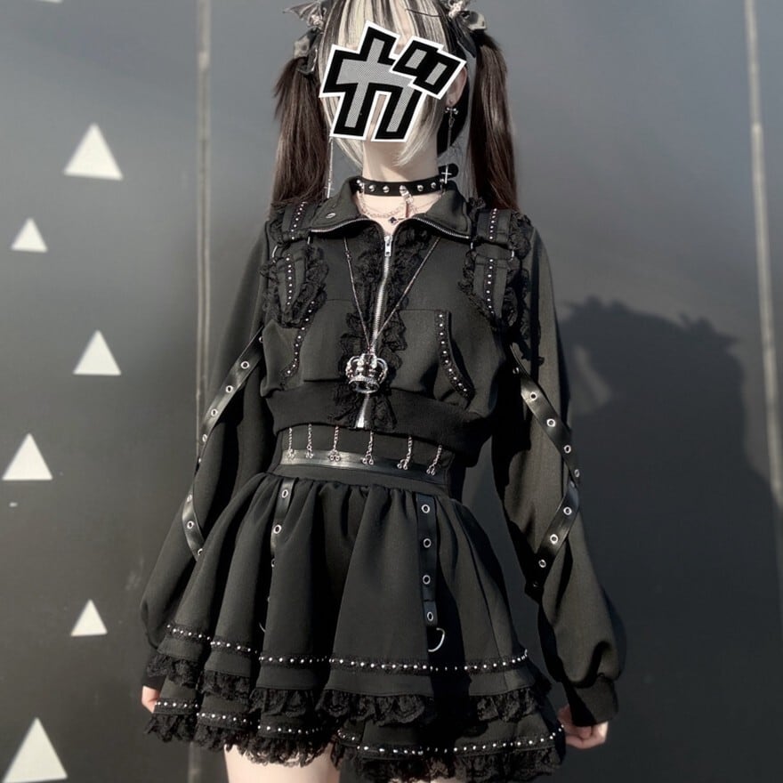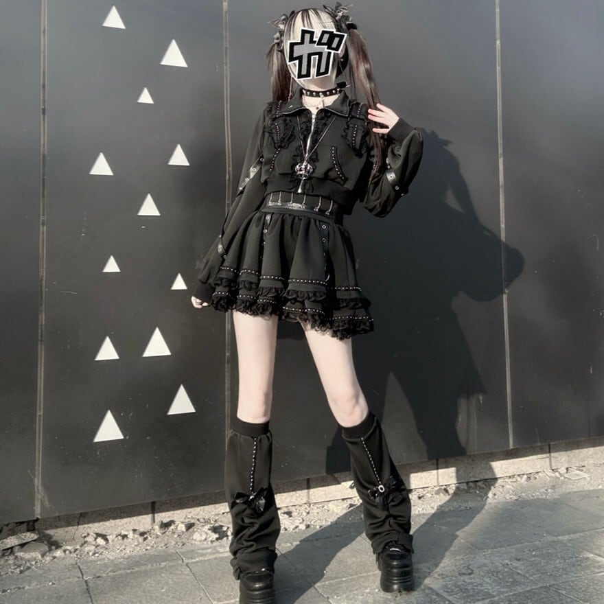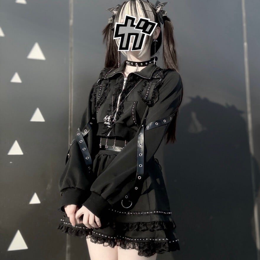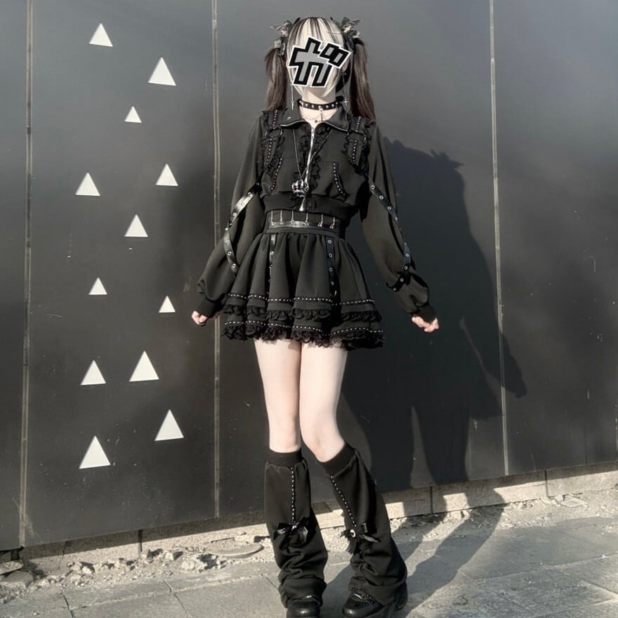 ライブ 推し活に 地雷系 セットアップ レッグウォーマー付き パンクロリィタ 勝負服 参戦服