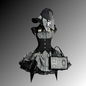 白刺繍が映えるクラシカルなデザインで、ゴスロリ・ハロウィンコーデの完成度を高める存在感ある一点です。