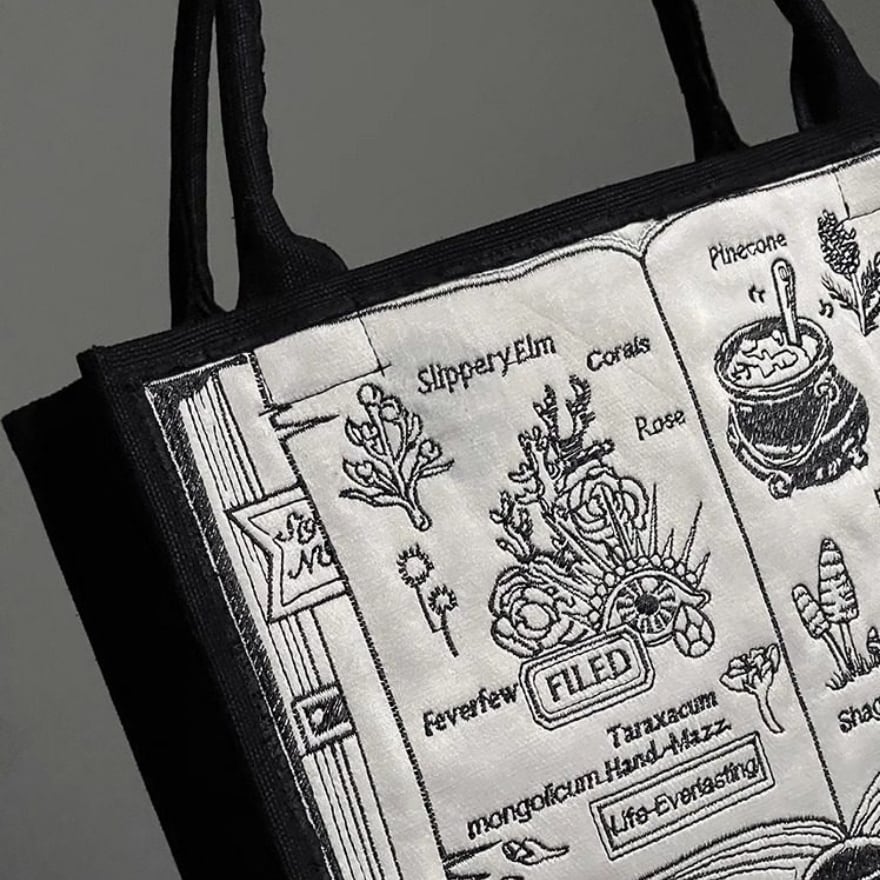 ゴスロリ バッグ 魔導書モチーフ トート Alice Girl 黒×白刺繍 クラシカルゴシック ロリィタ