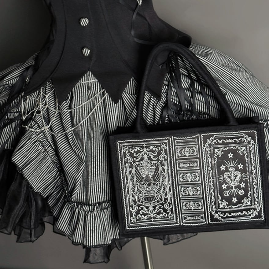 Alice Girlの世界観を凝縮した魔導書モチーフのゴシックバッグ。