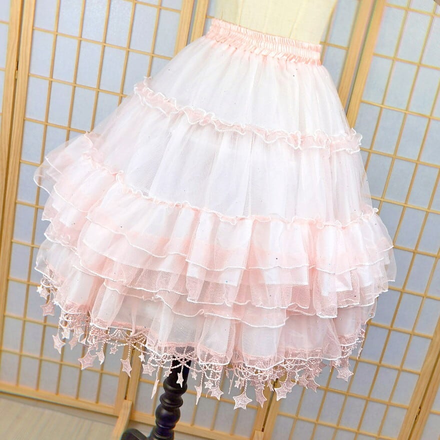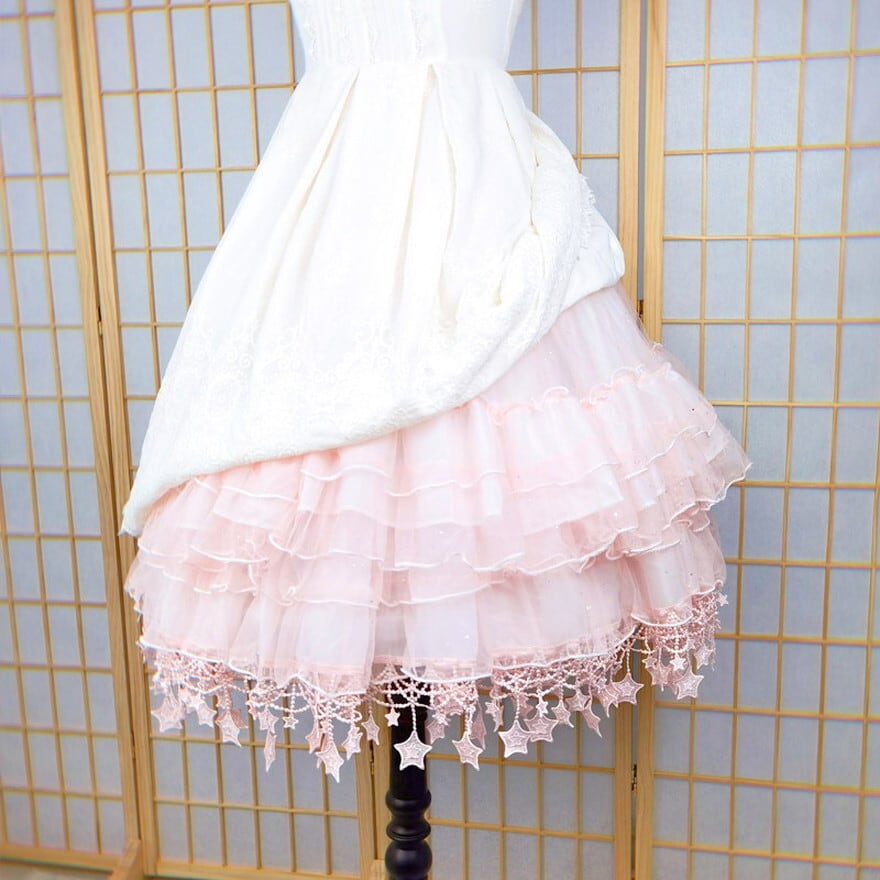 淡いピンクに星レースをあしらったロリィタ向け中丈パニエ。